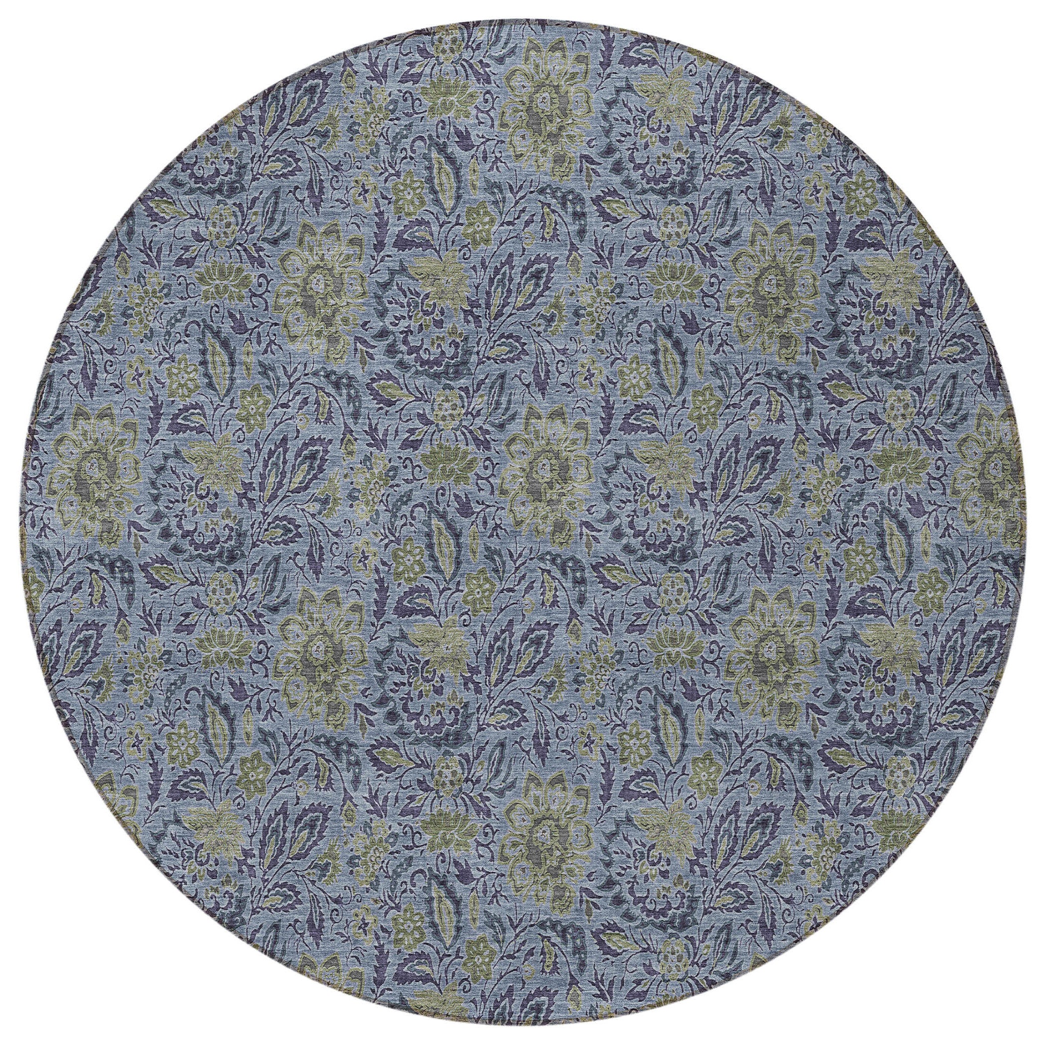 8' Denim Blue Navy Blue And Gray Round Floral Washable Indoor Outdoor Area Rug