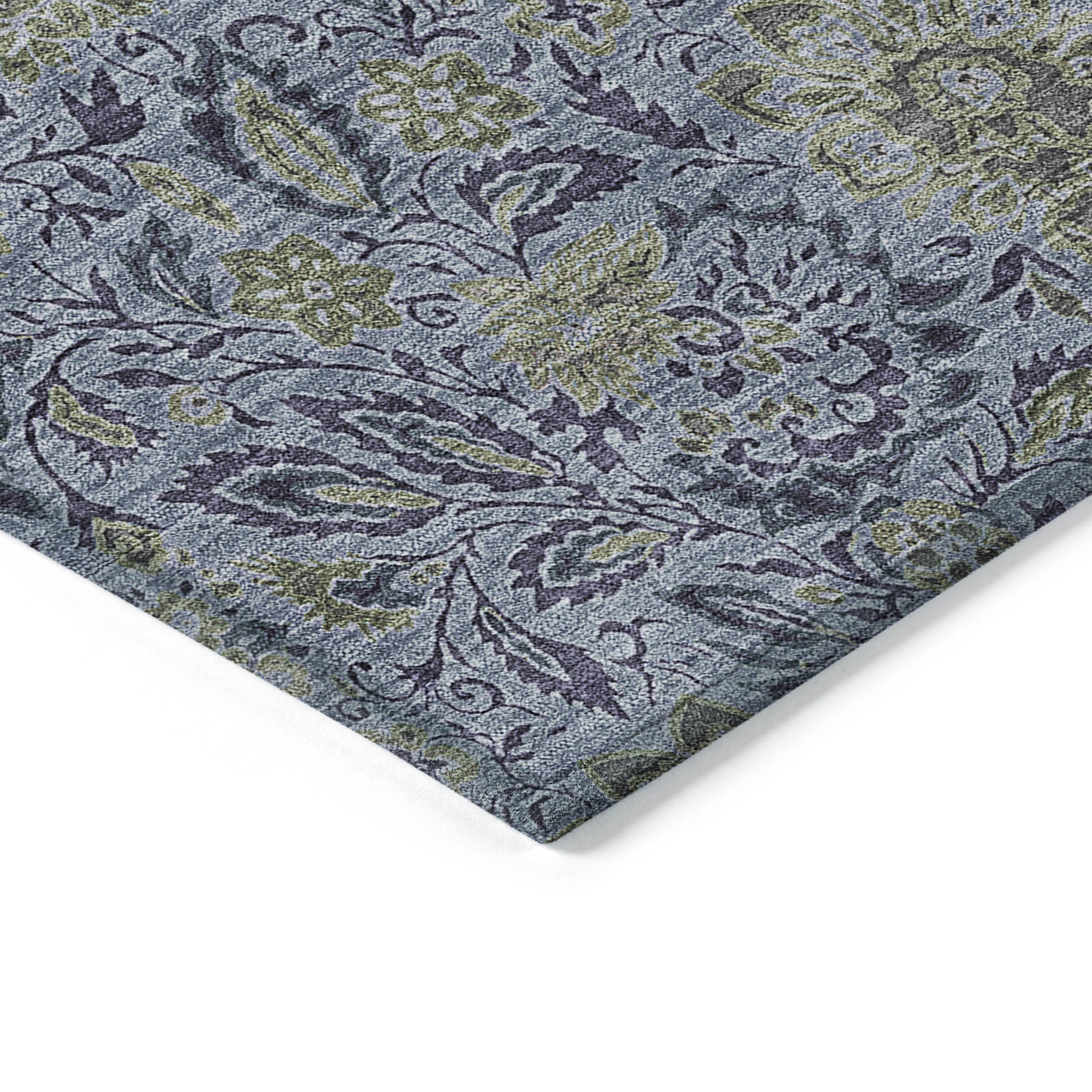 Add some artistry to your room with this 8-foot denim blue navy blue and gray round floral washable indoor outdoor area rug. This geometric round shaped rug features a floral pattern in denim blue, navy blue, and gray that combines a good looking print with a unique and updated shape. The mix of shape, color, and design gives this rug refreshing visual interest. Ideal for outdoor spaces or high traffic areas with kids and pets, this rug is made from heavy duty polyester that is stain resistant to help repel water, dirt, and stains. Versatile in use, durable, and easy to maintain, this rug is an ideal solution to add a decorative and inviting touch to your indoor or outdoor space. 96-inch h x 96-inch w x 0.19-inch d.
