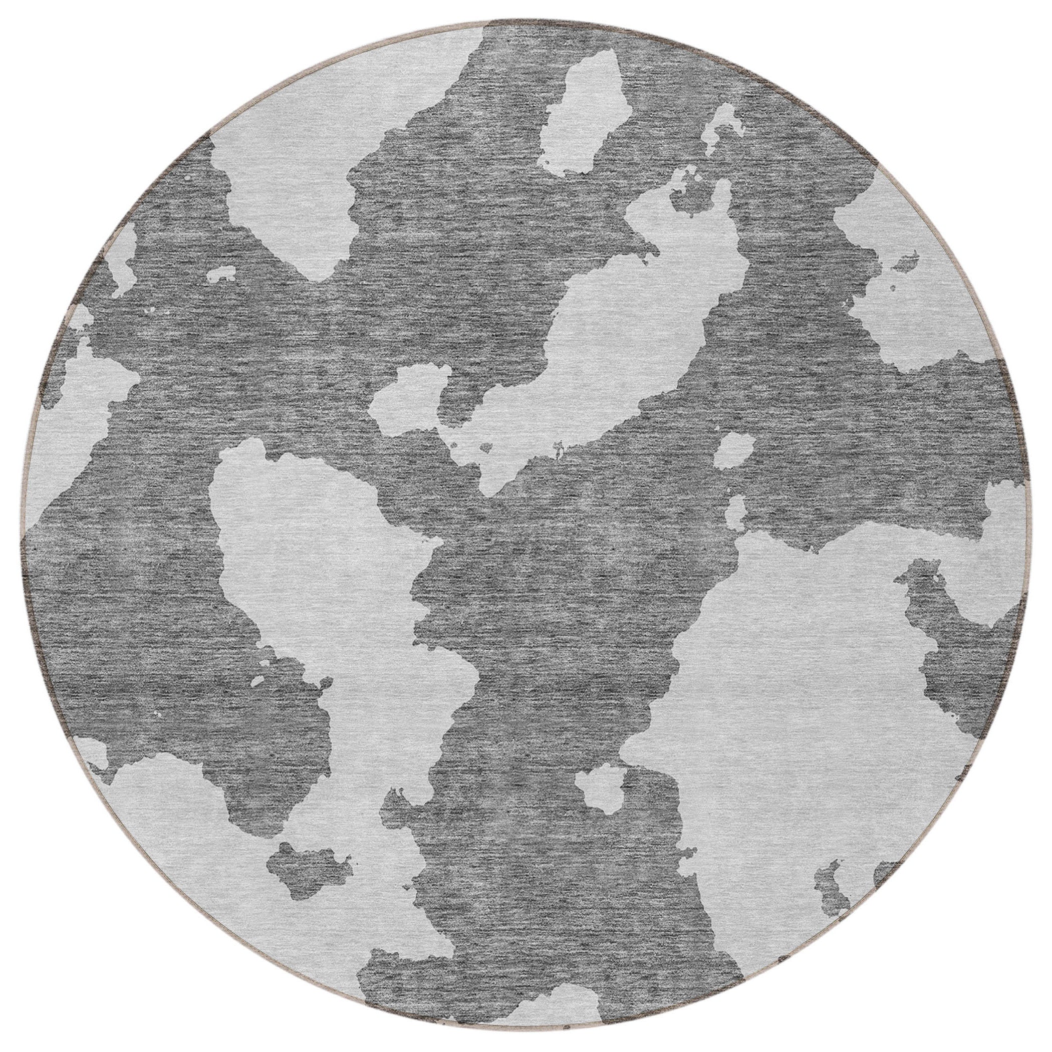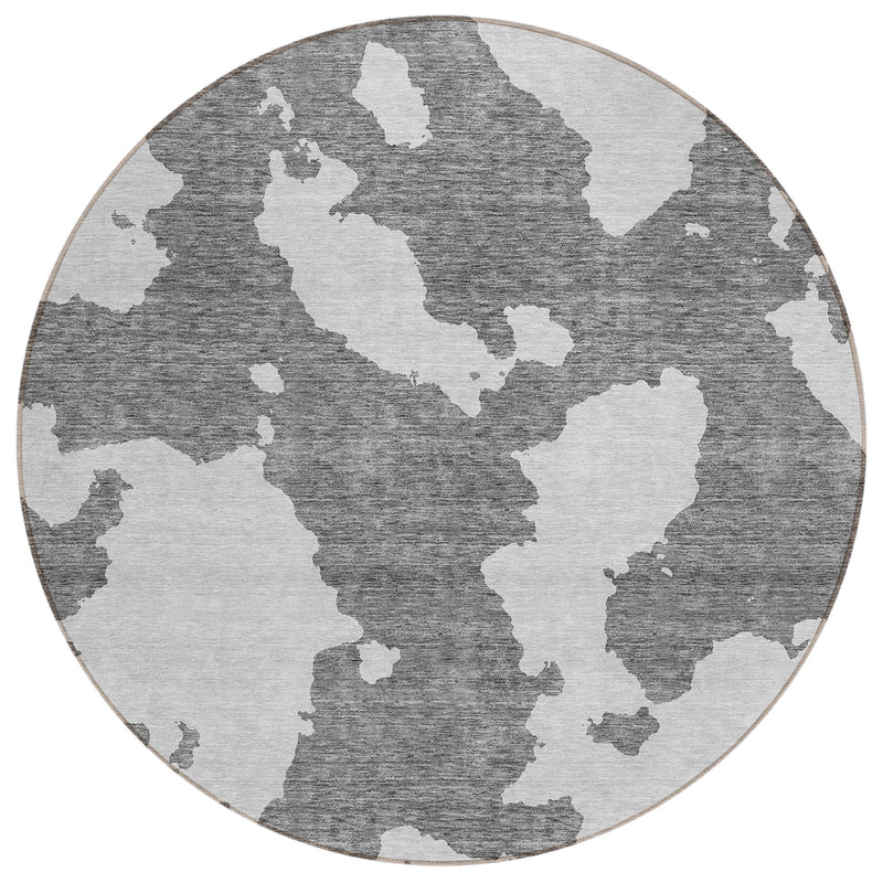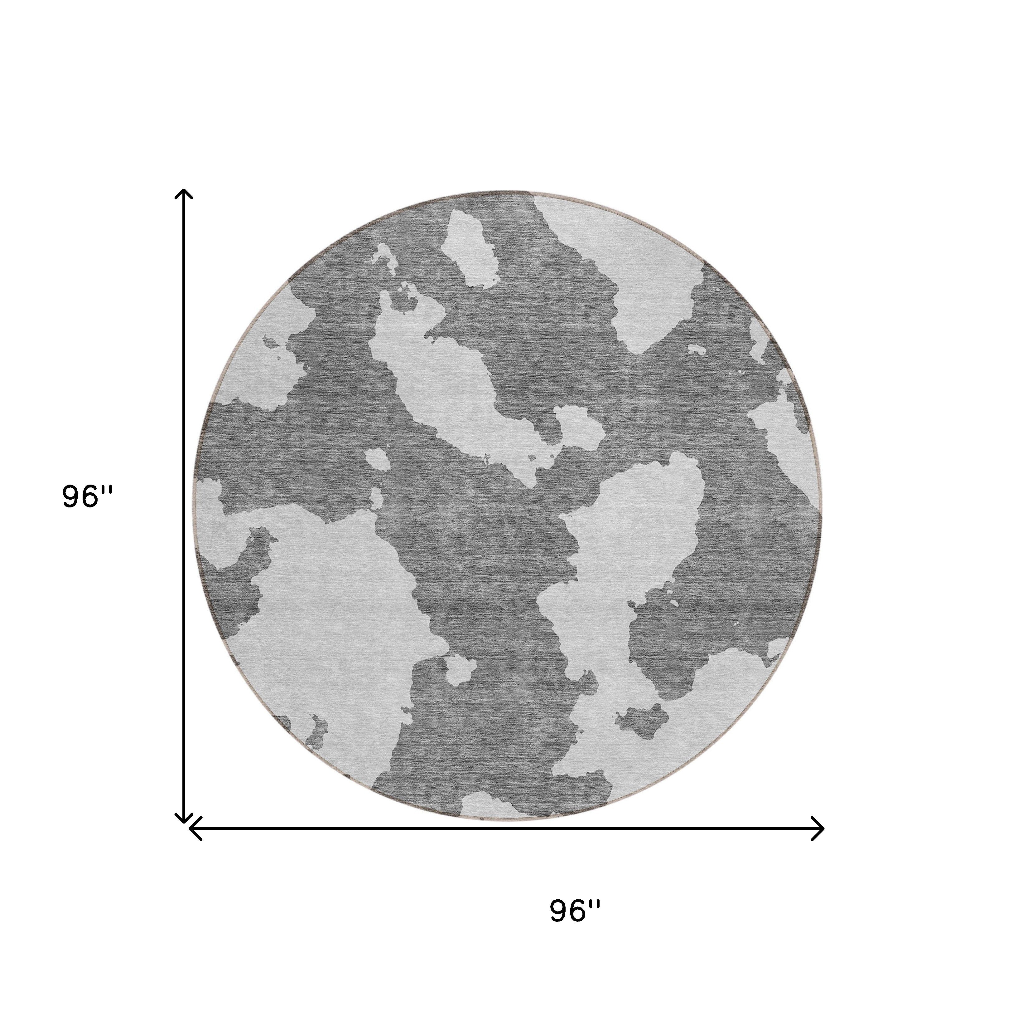 8' Gray And Ivory Round Abstract Washable Indoor Outdoor Area Rug