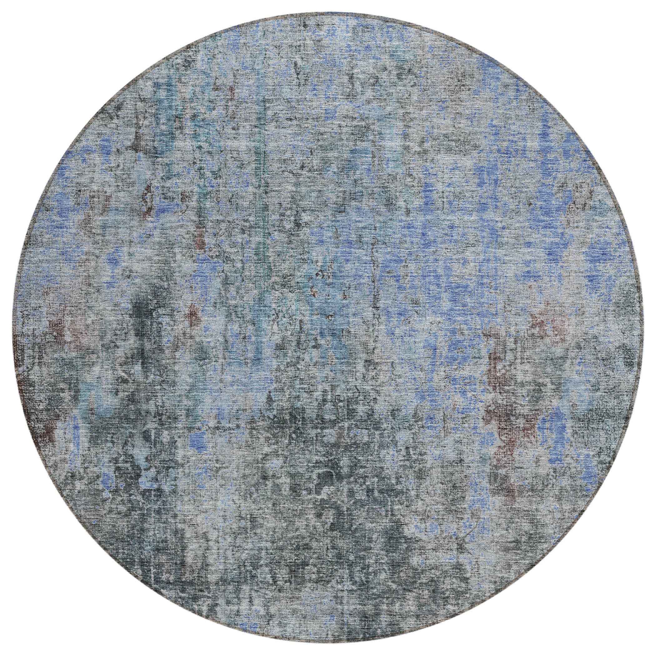 8' Gray Charcoal And Blue Round Abstract Washable Indoor Outdoor Area Rug
