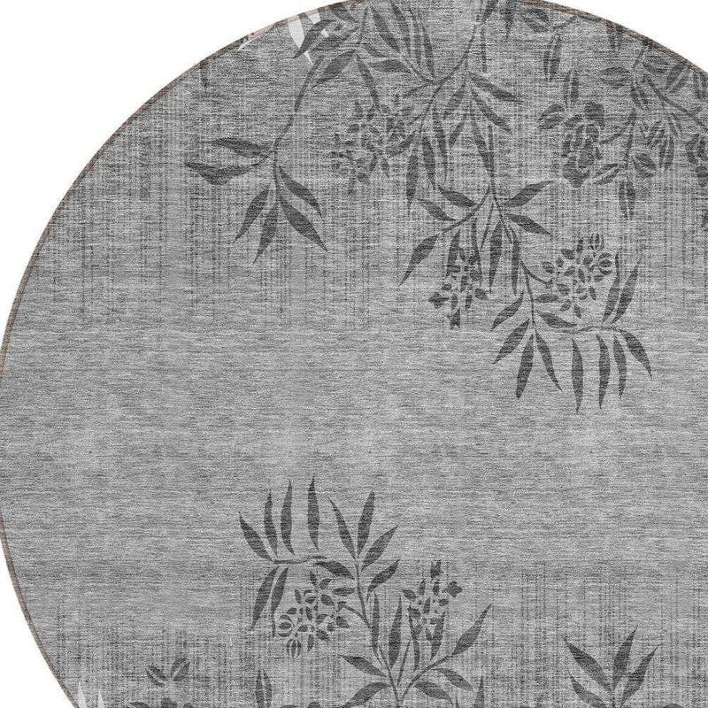 8' Gray Charcoal And Ivory Round Floral Washable Indoor Outdoor Area Rug
