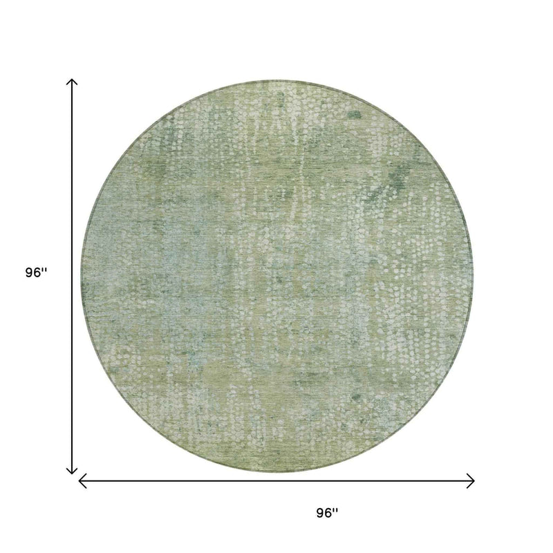 8' Green And Ivory Round Abstract Washable Indoor Outdoor Area Rug