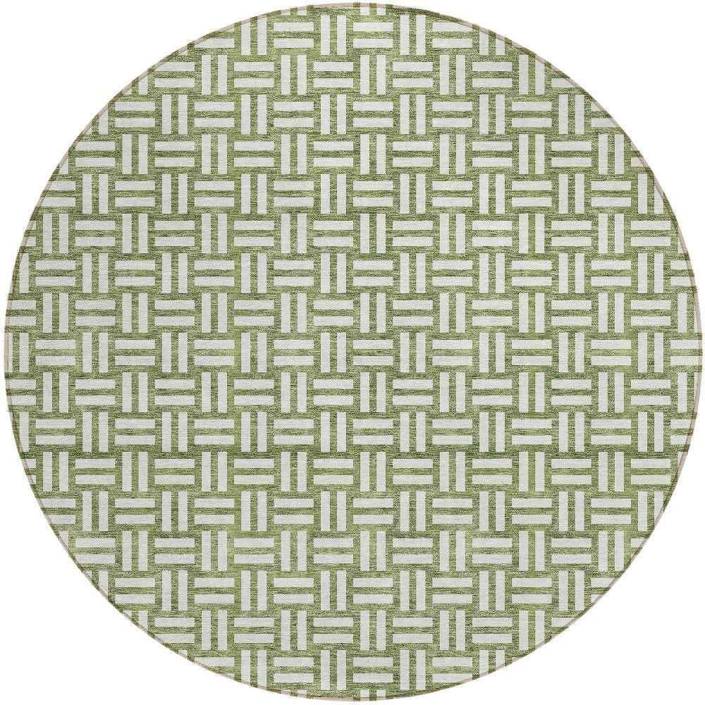 8' Green And Ivory Round Geometric Washable Indoor Outdoor Area Rug