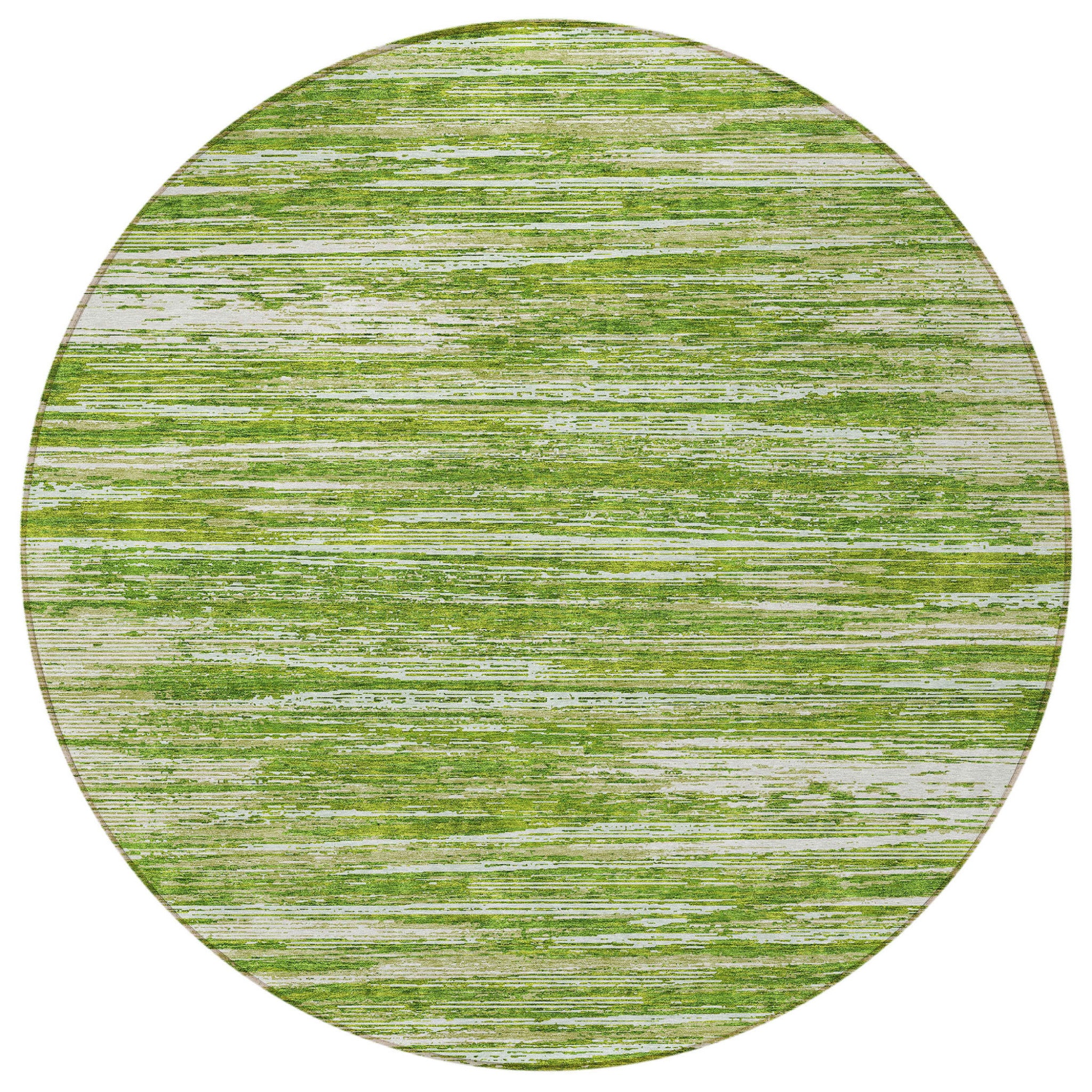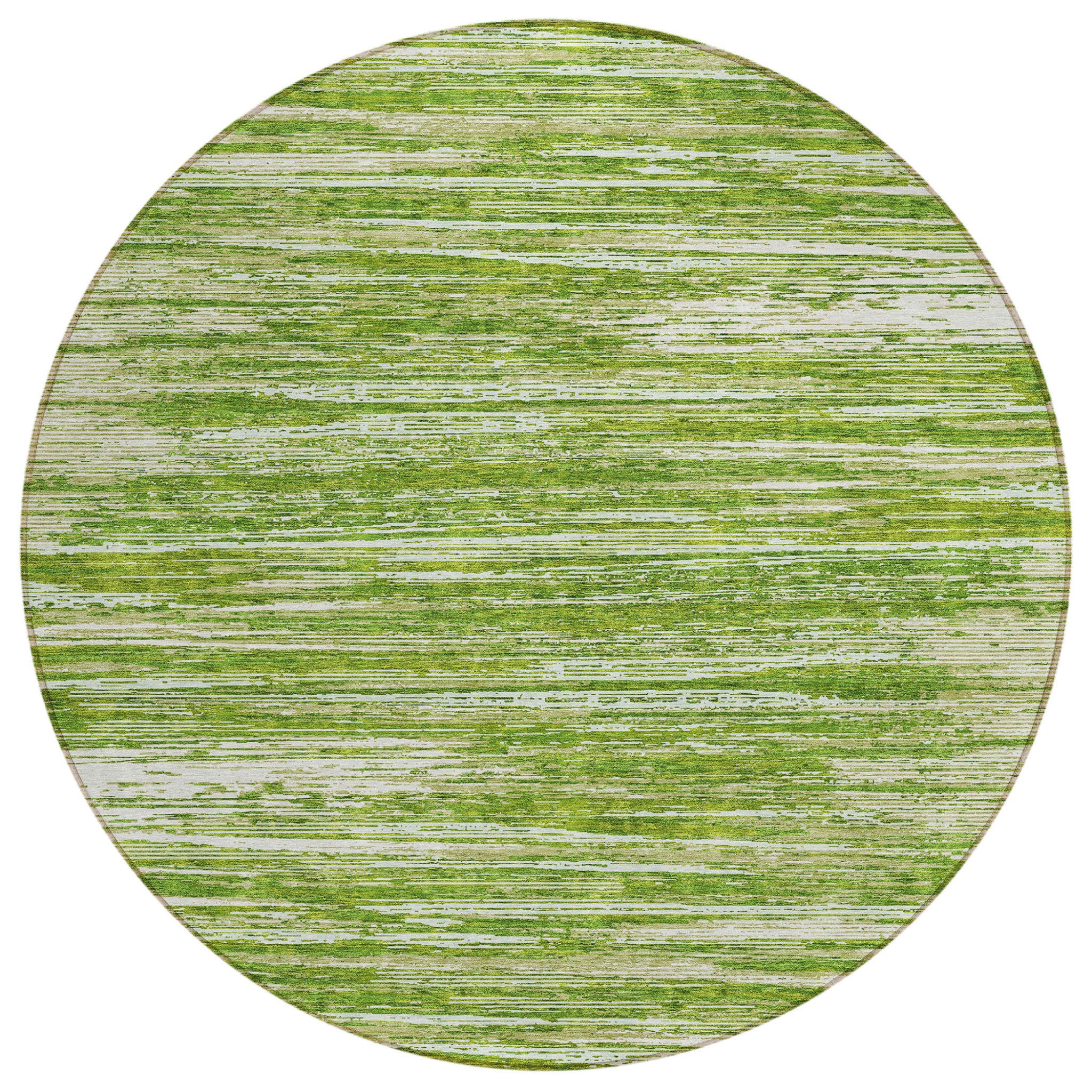 8' Green And Ivory Round Striped Washable Indoor Outdoor Area Rug