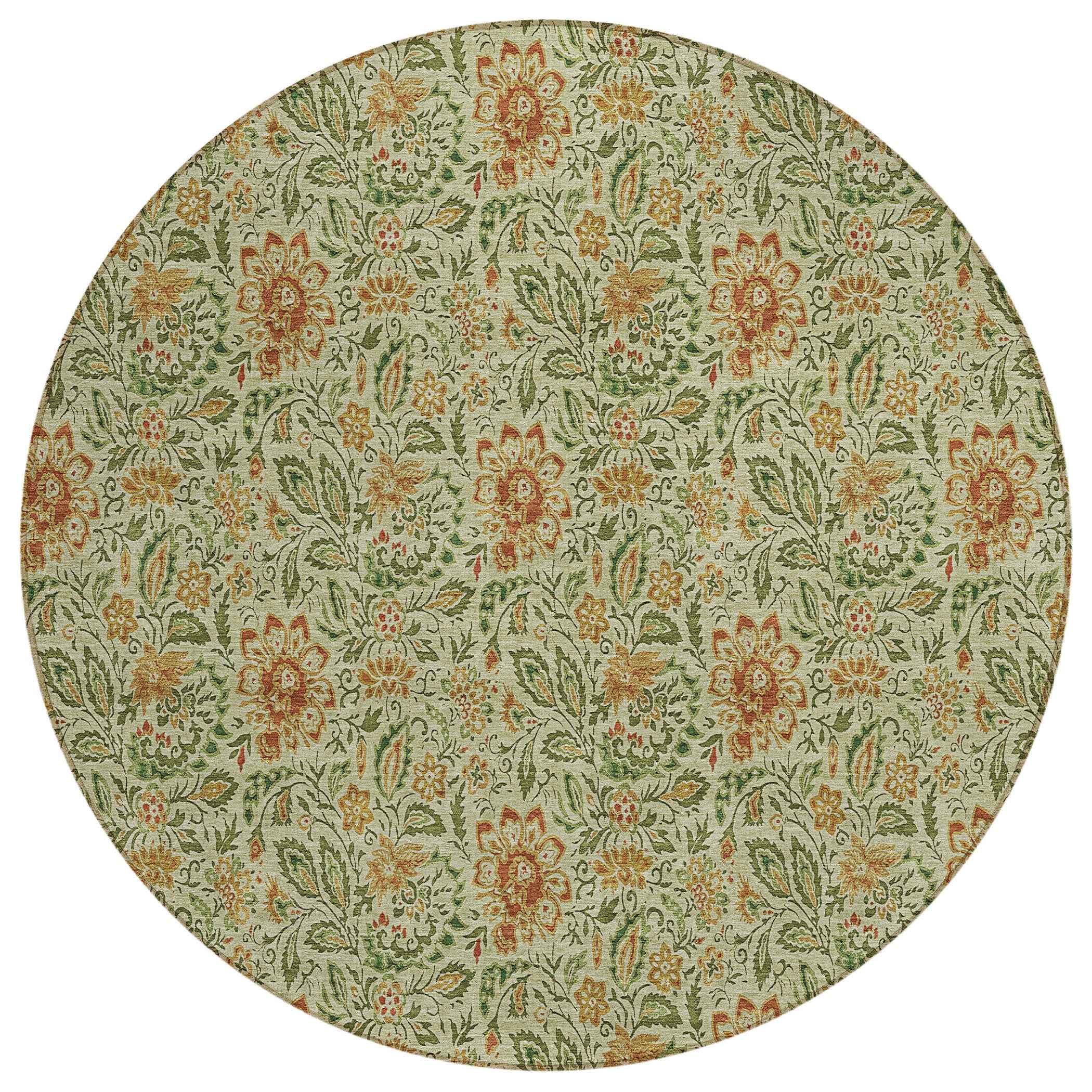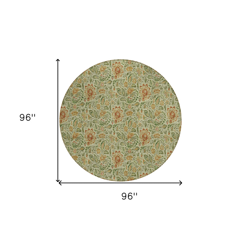 8' Green Copper And Sage Round Floral Washable Indoor Outdoor Area Rug