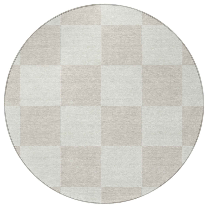 8' Ivory And Beige Round Geometric Washable Indoor Outdoor Area Rug