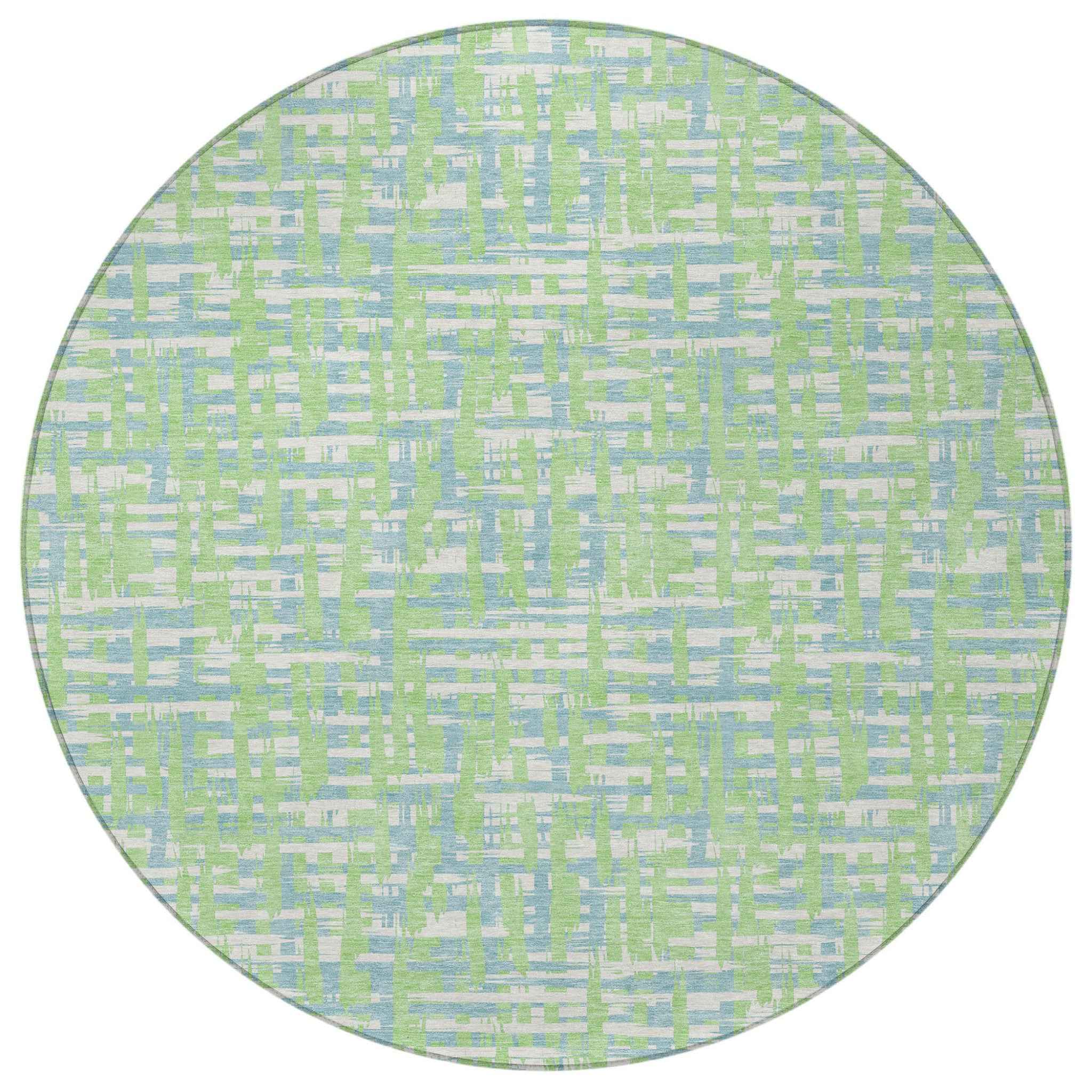 8' Mint Green Blue And Beige Round Abstract Washable Indoor Outdoor Area Rug