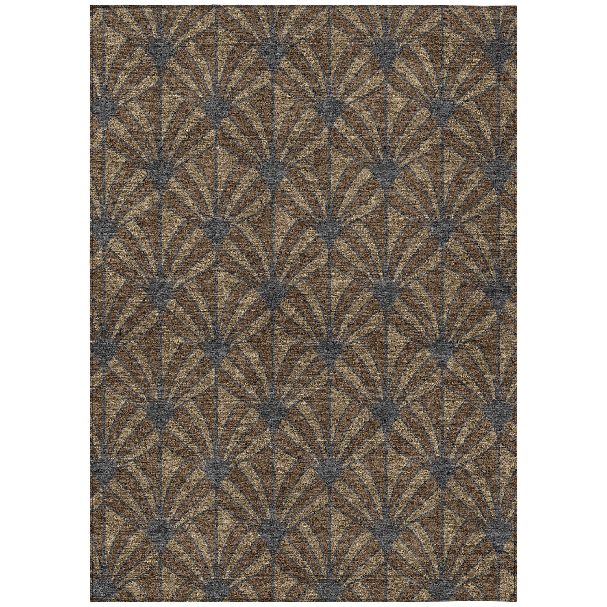 8' X 10' Chocolate Gray And Beige Seashell Washable Indoor Outdoor Area Rug