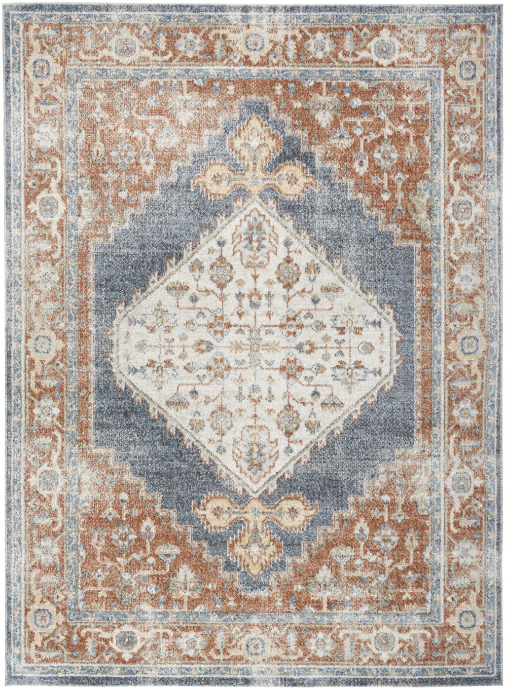 Add great coloration and comfortable texture to your space with this 8' x 10' denim blue oriental power loom distressed washable area rug. This rectangle shaped rug features a oriental design in denim blue to give it visual interest. A classic shape marries with good looking design for your space This superior Turkish rug represents the highest quality and is built to last. Area Rugs help to give warmth and sense of home to your space. .25" H x 94.00" W x 120.00" D
