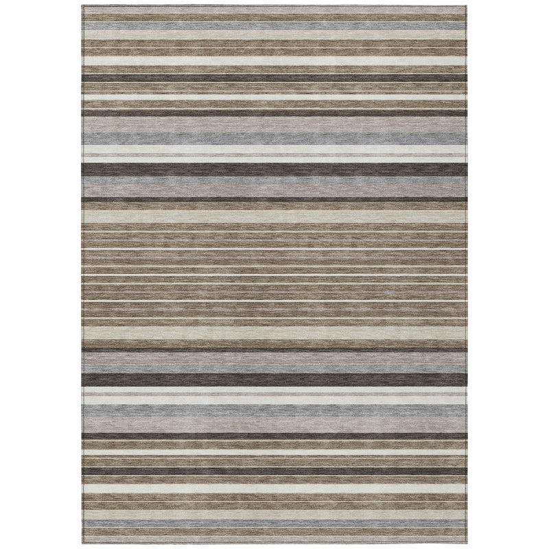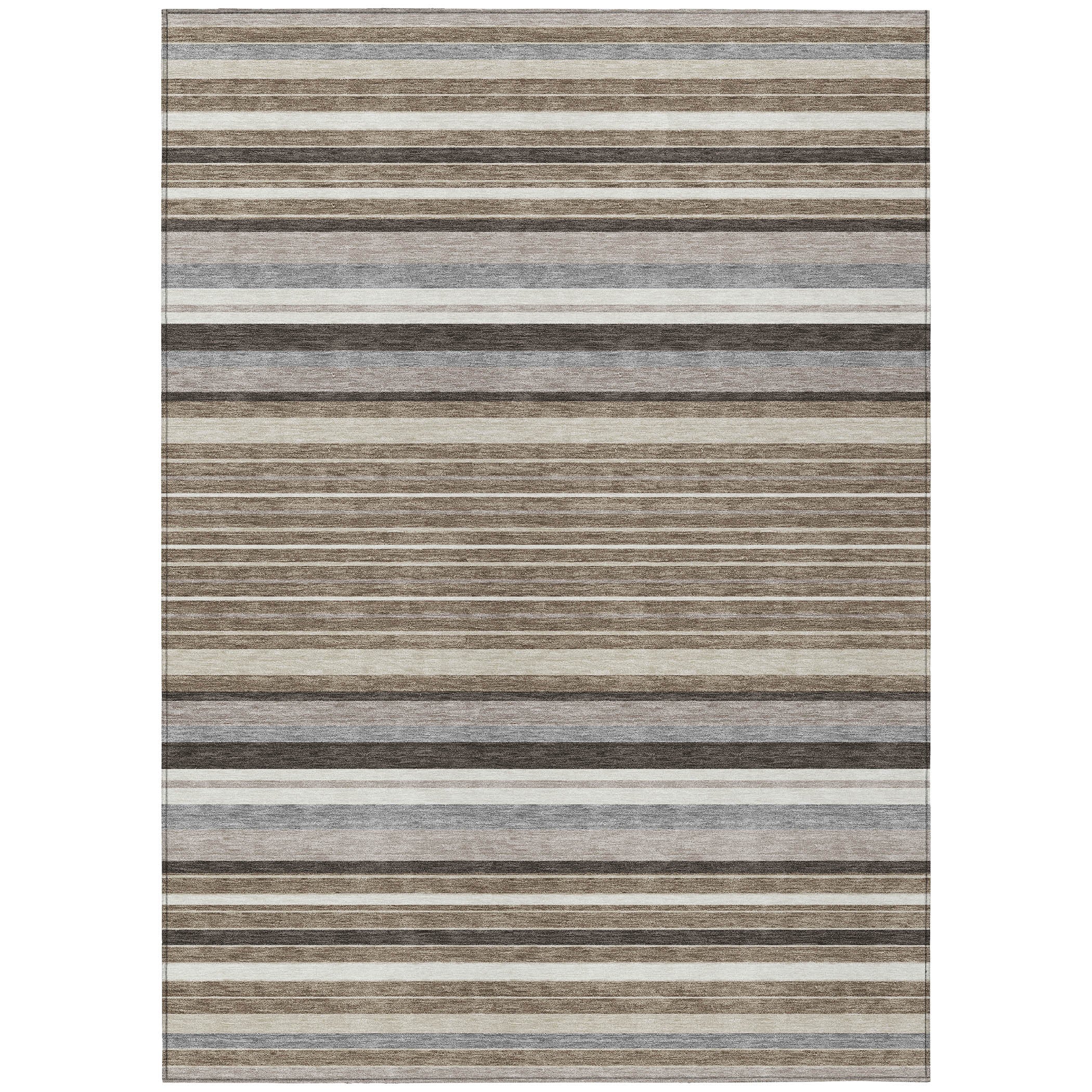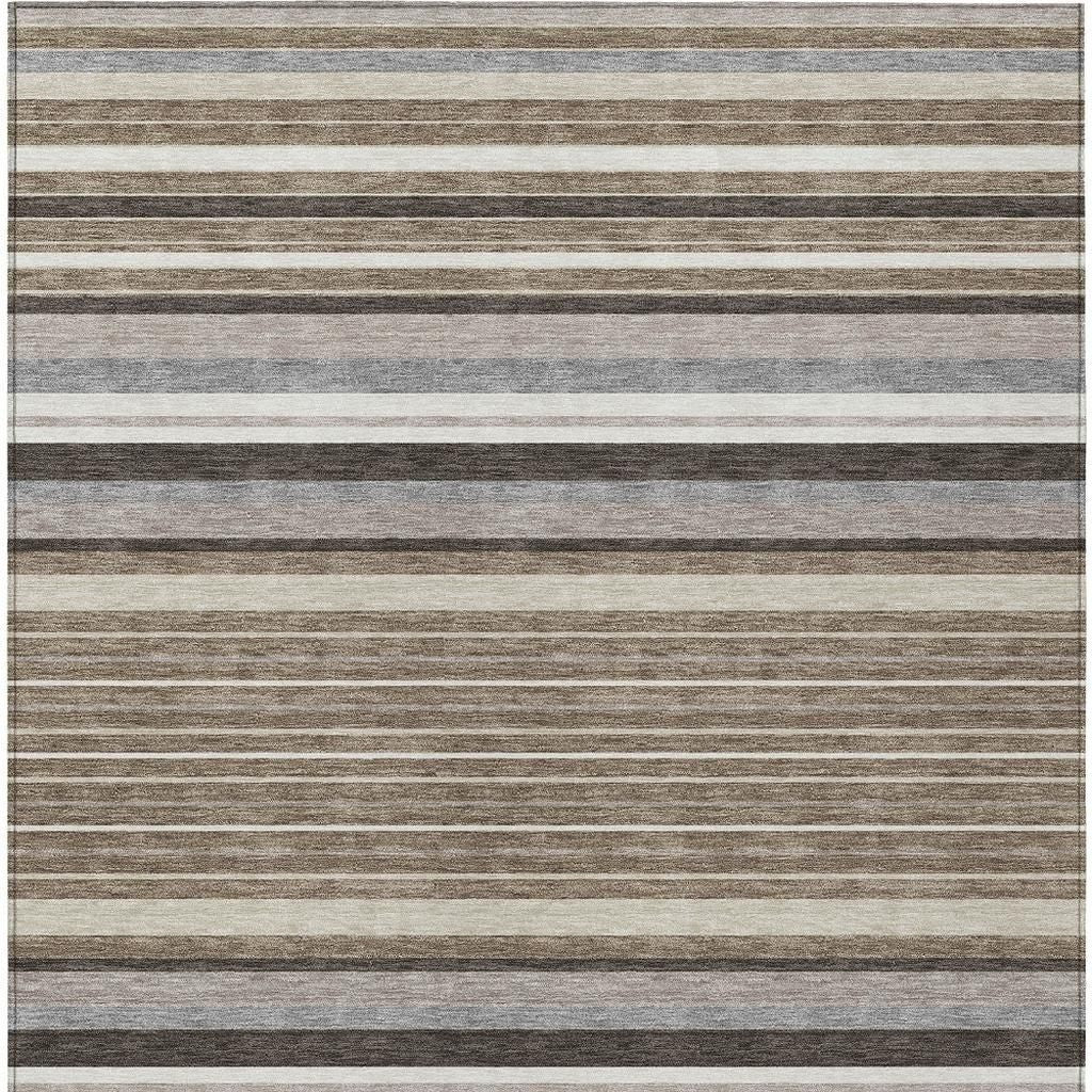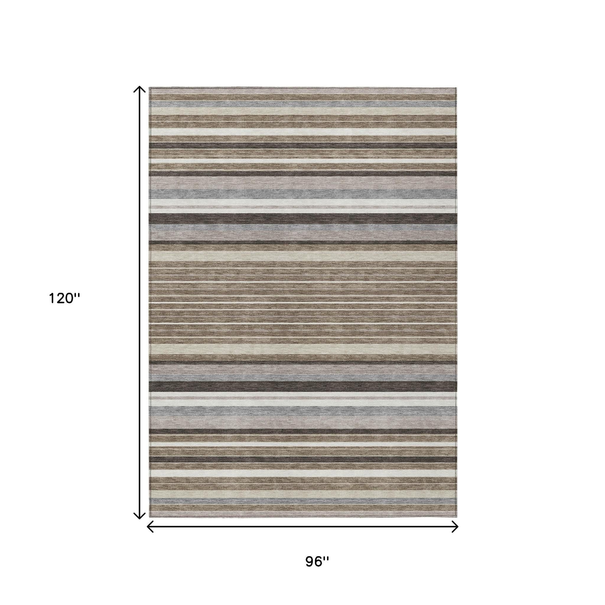 8' X 10' Taupe Ivory And Brown Striped Washable Indoor Outdoor Area Rug