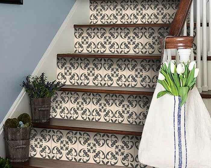 Create a unique look with these 8" x 8" Charcoal Orchid Peel and Stick Removable Tile stickers. These fabulous peel and stick tiles will add sophisticated flair and design to your kitchen backsplash, fireplace mantel, stair treads, half wall, bathroom or nook. These 8" square tile stickers are an easy, no mess solution to complete a personalized and colorful room makeover. Easy to apply on any clean dry flat surface, and easy to remove. Multi use and multi-room appeal make this design option is perfect for renters, landlords, college students and homeowners alike. Peel and stick tile decals make it easy to turn your space into a home. Removable without damage to surfaces. One kit contains 24 stickers. Kit includes a single repeating design.