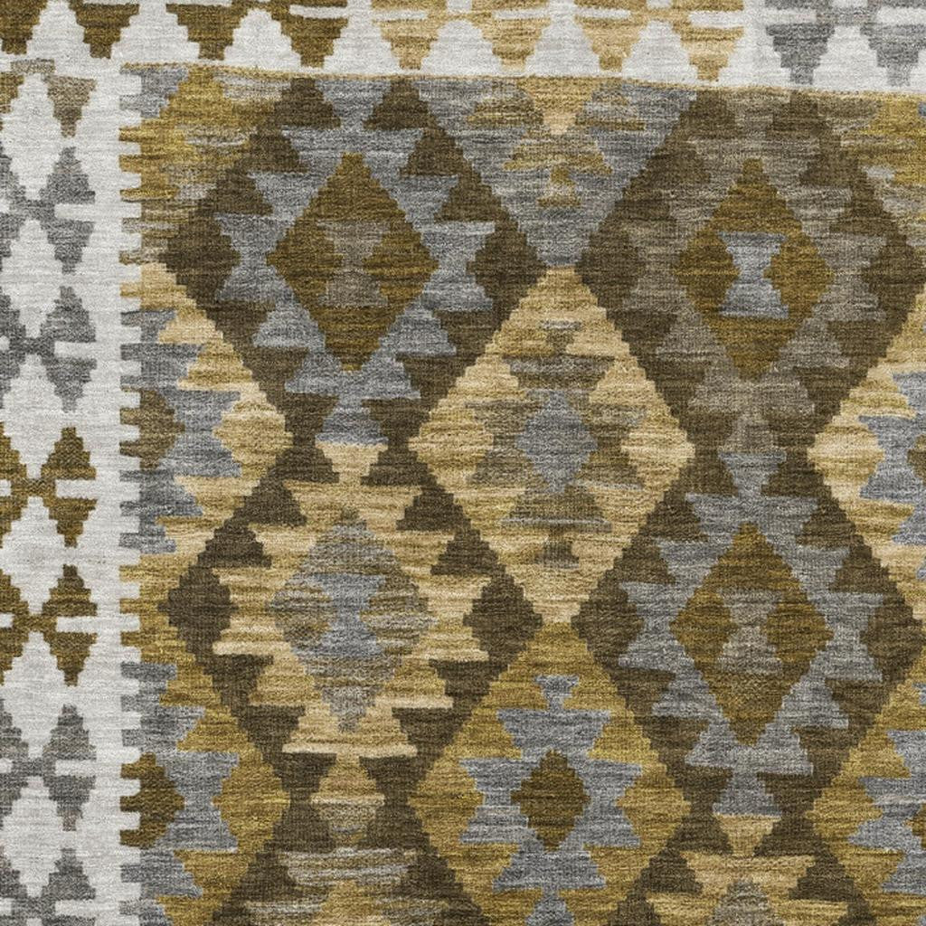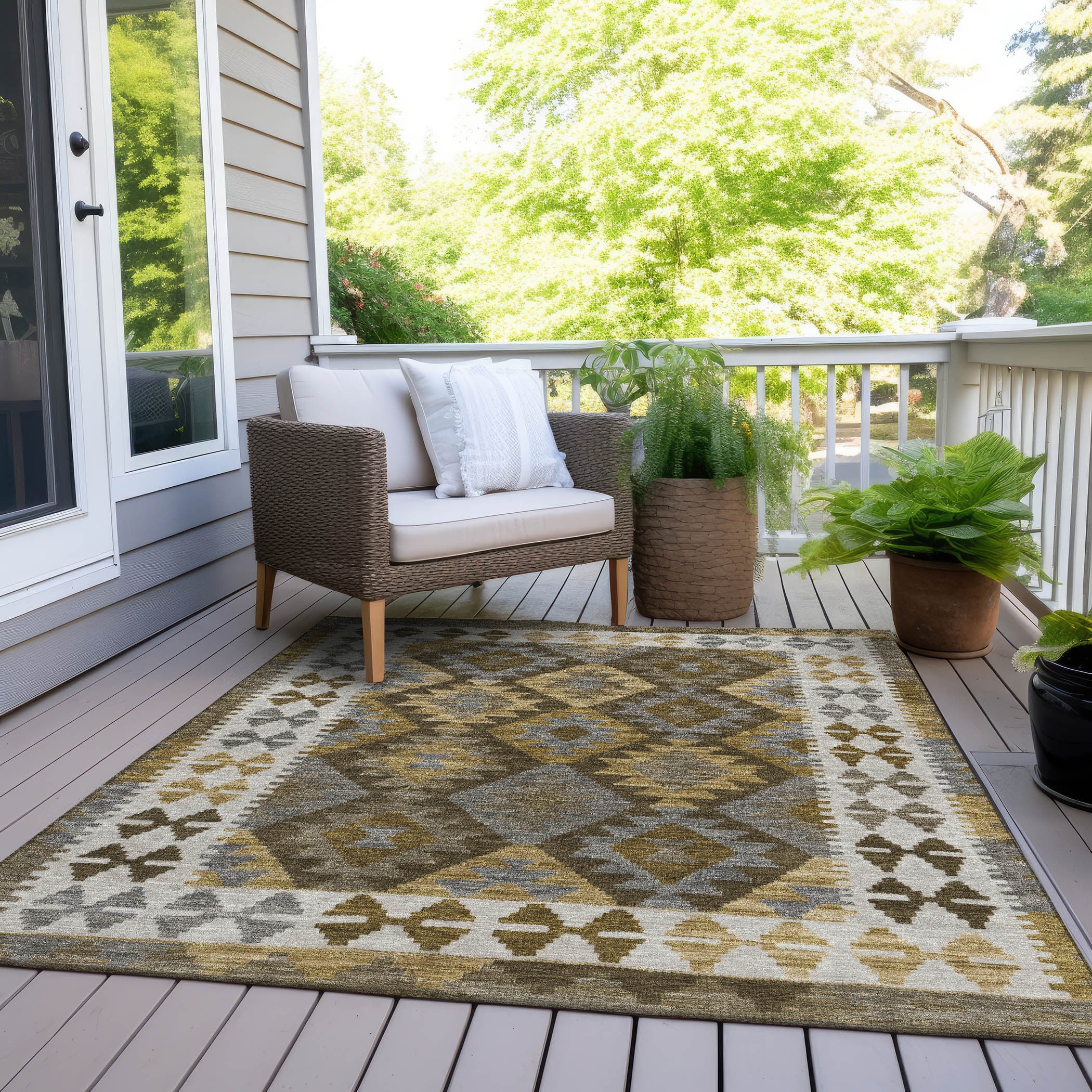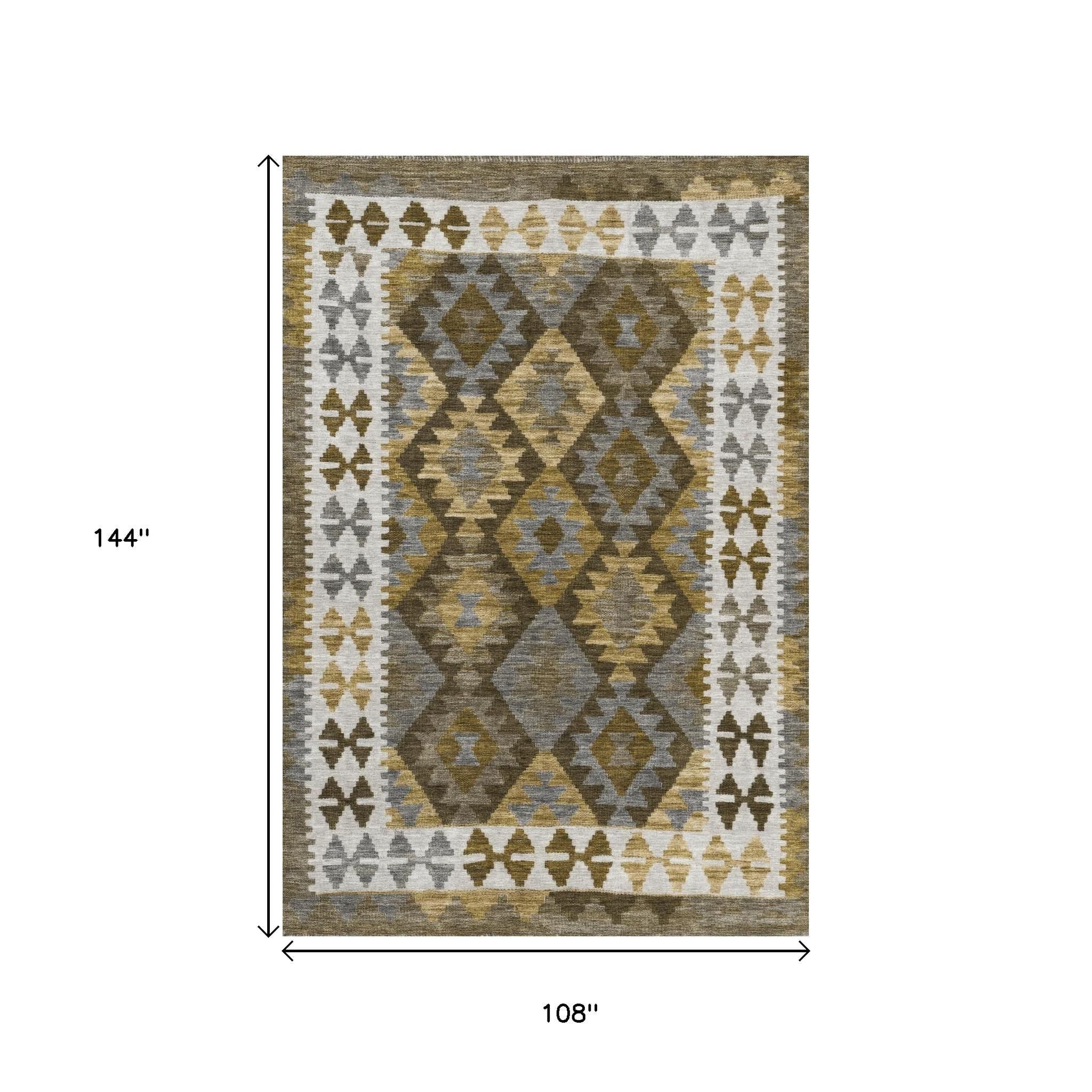 9' X 12' Brown Ivory And Gold Tribal Washable Indoor Outdoor Area Rug