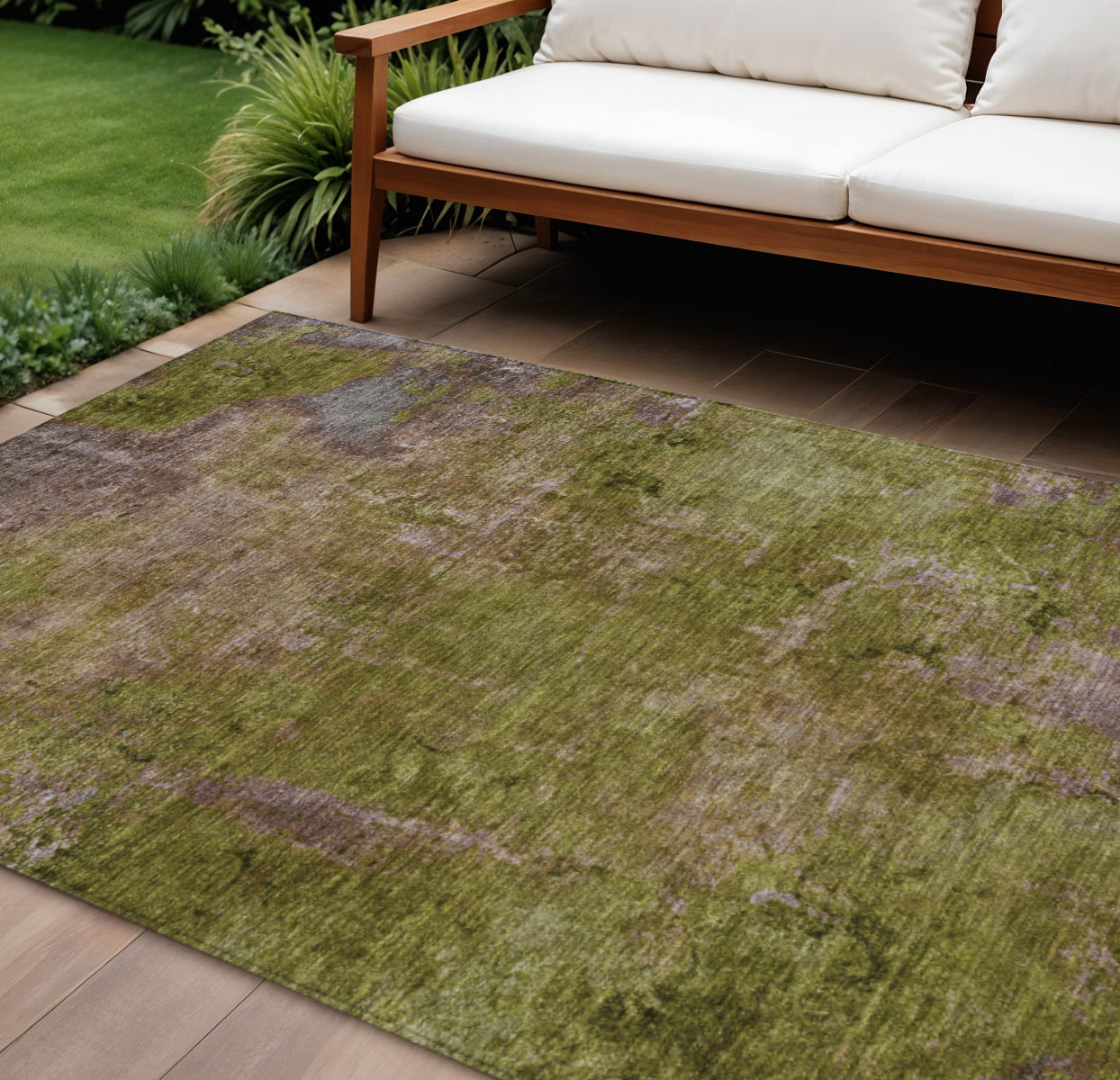 9' X 12' Green Abstract Washable Indoor Outdoor Area Rug