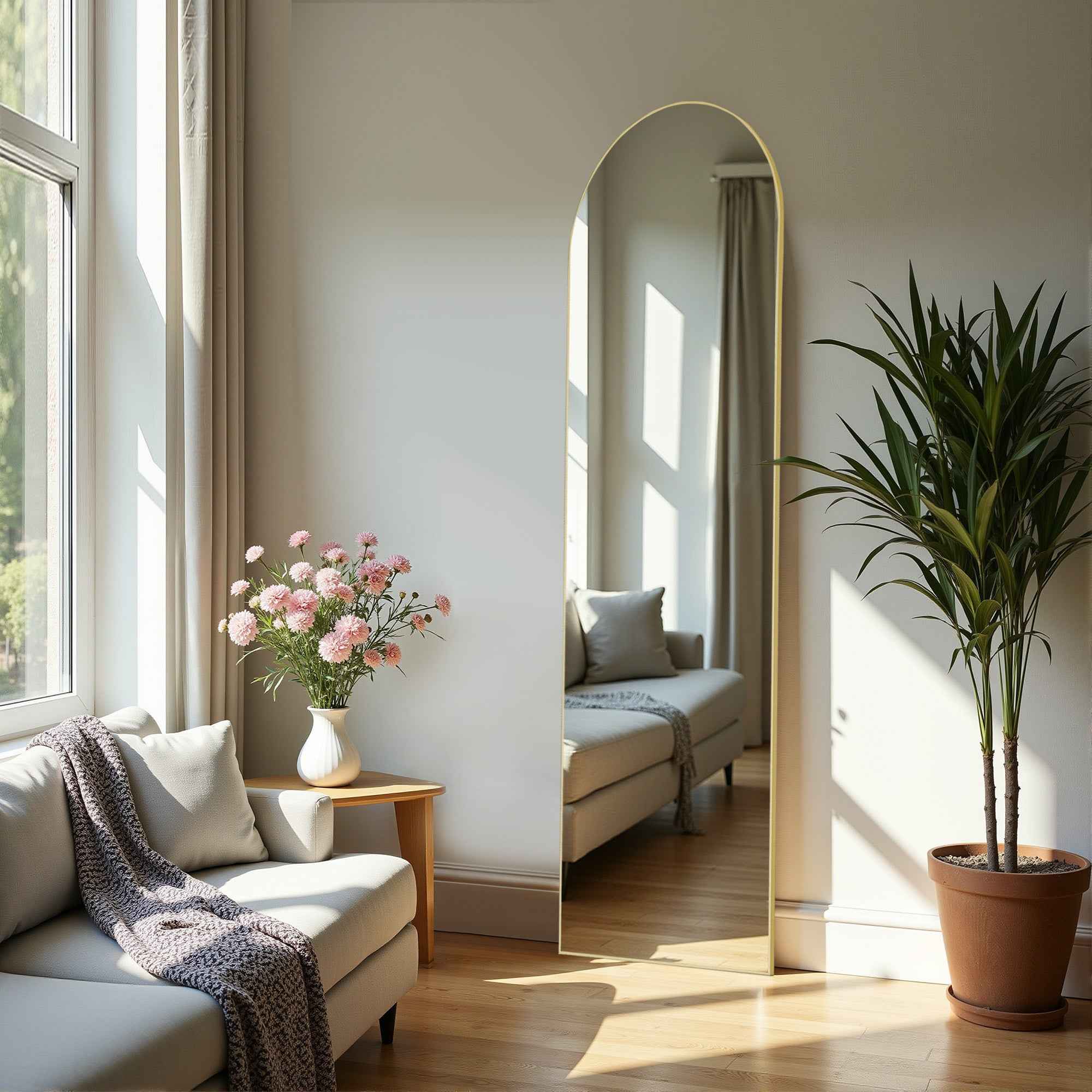 Gold Aluminum Arch Freestanding Ornate Framed Accent Mirror - Перейти к содержанию