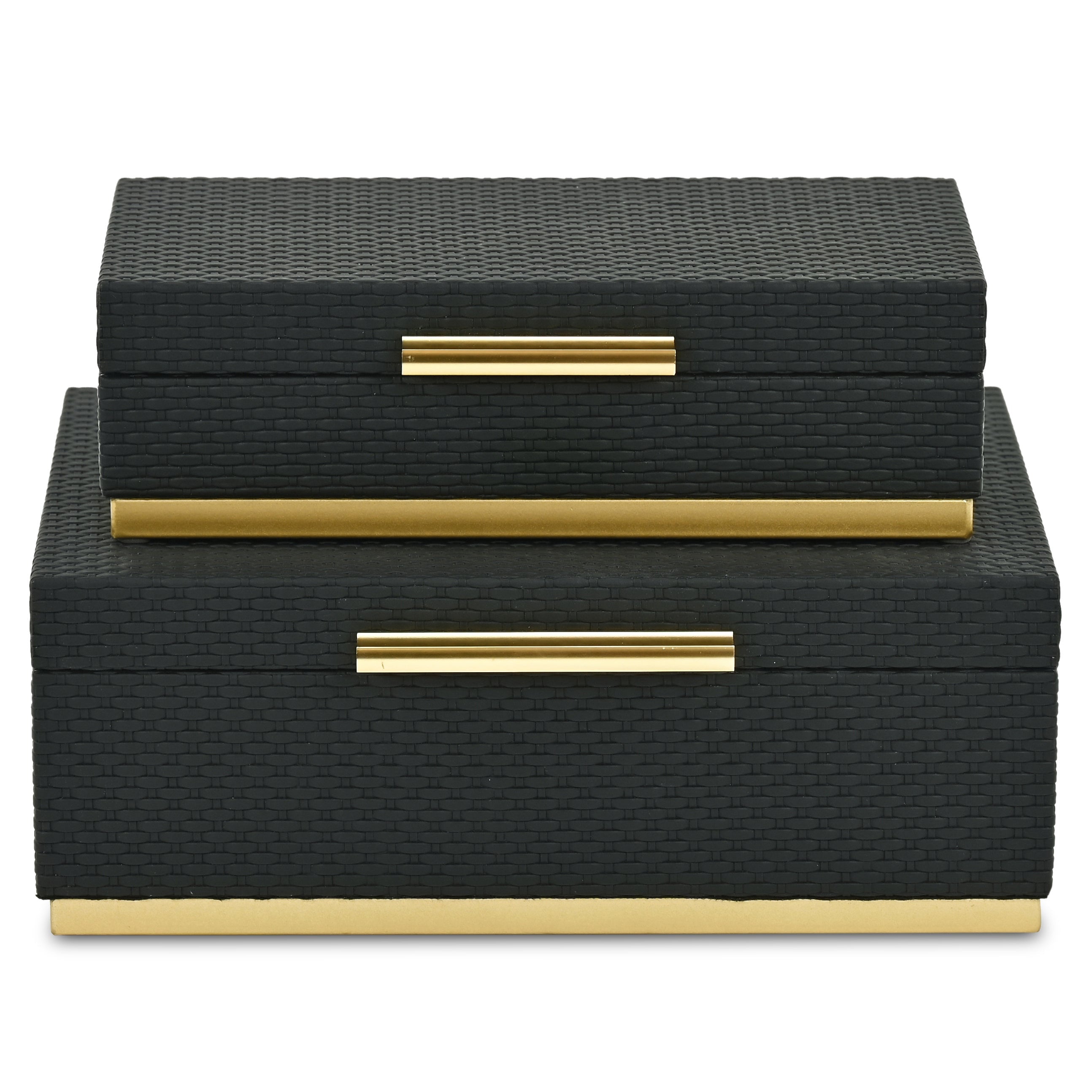 Set of Two Black And Gold Nesting Decorative Storage Boxes With Lids Default Title