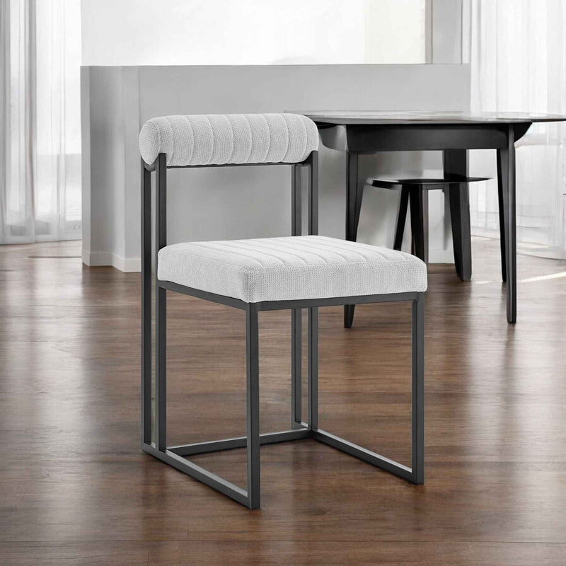 Out with the old and in with the new, this set of two gray and black upholstered polyester open back dining side chairs can perfectly suit any dining table. This armless chair has a sleek silhouette making it ideal for seating around the table but can also double as an accent chair. Complete with open back, this chair not only looks good but is comfortable. Dining chairs are a great way to compliment your kitchen or dining room but can also be used in the foyer, hallway, or any room you might need extra seating. 31-inch H x 17.5-inch W x 22-inch D