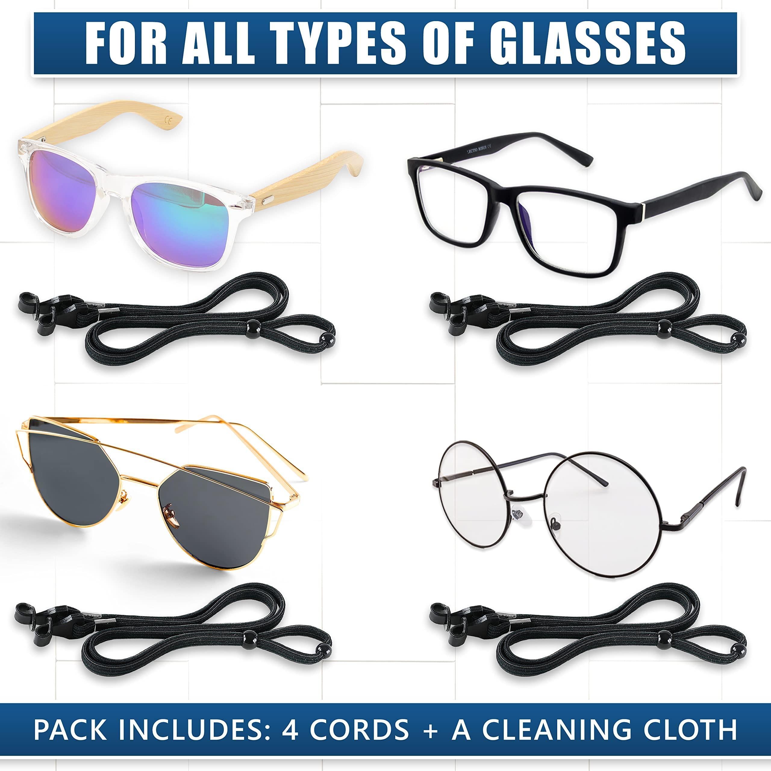 SIGONNA Eye Glasses String Holder Straps Sports Sunglasses Strap for Men Women Eyeglass Holders Around Neck Glasses Retainer Cord Chains Lanyards 4 Cords (Black)