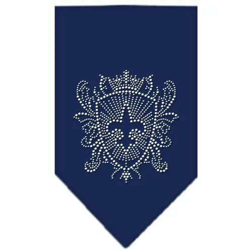 Fleur De Lis Shield Rhinestone Bandana Navy Blue Large