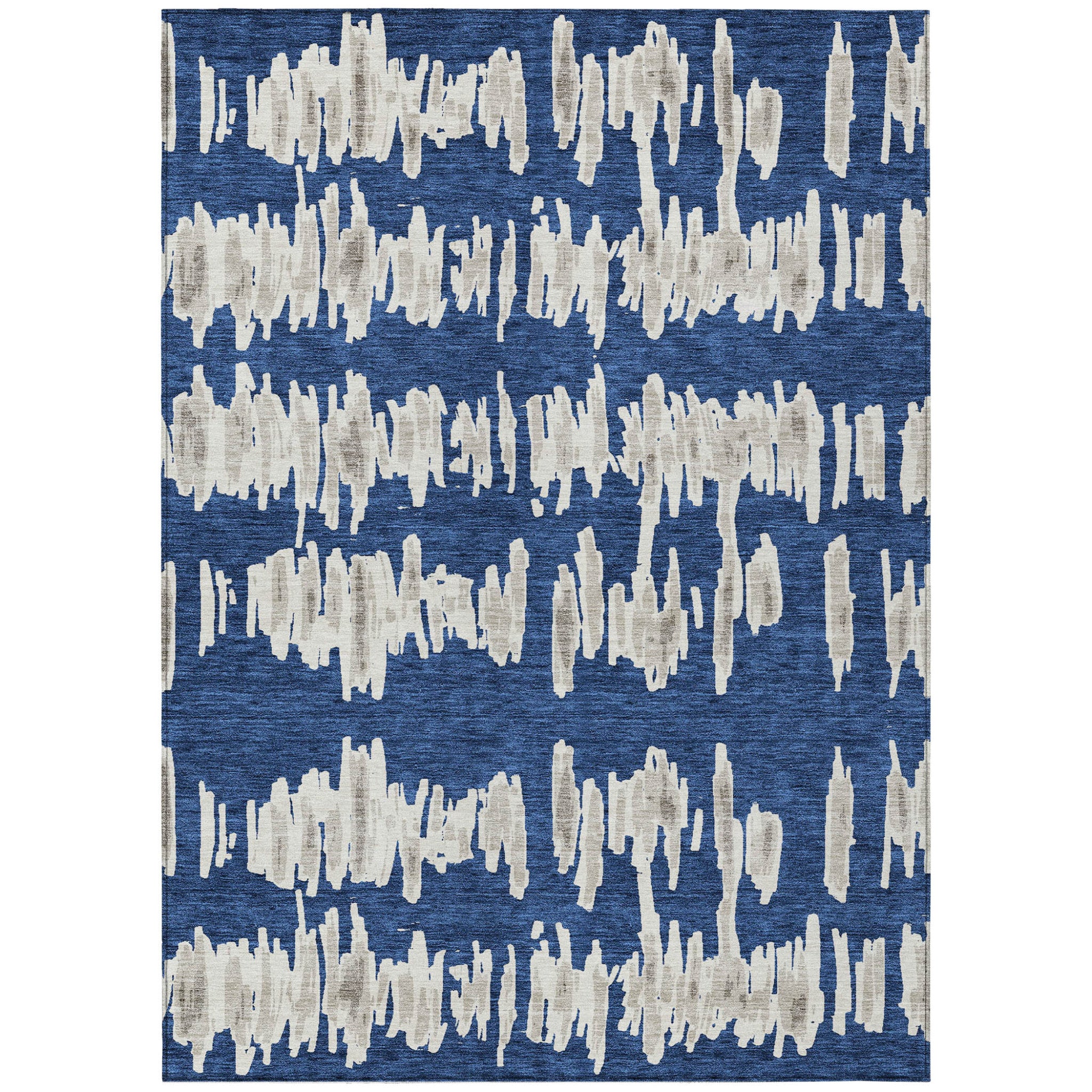 10' X 14' Navy Blue Gray And Ivory Striped Washable Indoor Outdoor Area Rug