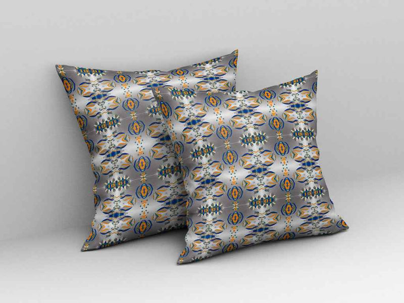 20" X 20" Gray And Orange Abstract Blown Seam Suede Throw Pillow