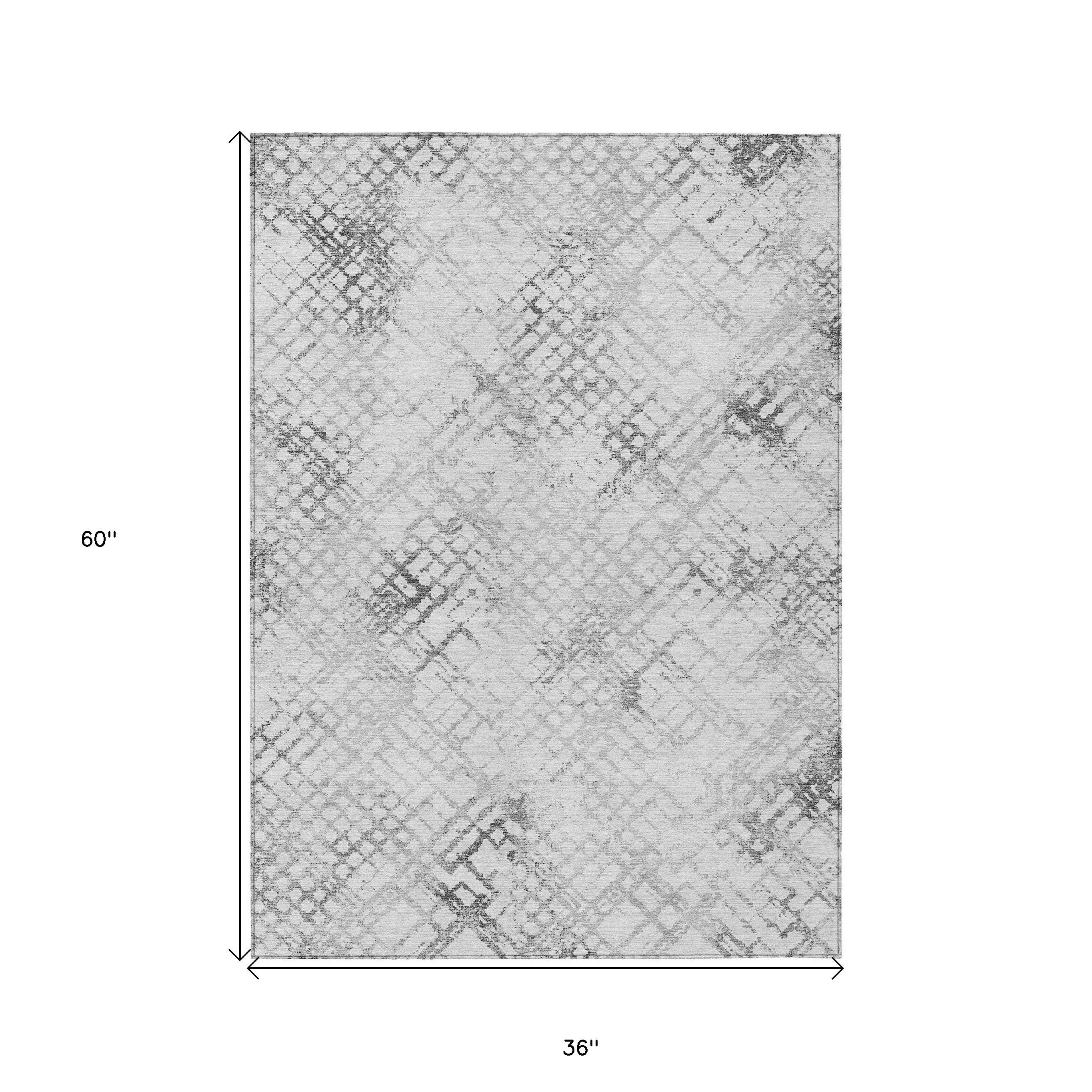 3' X 5' Gray Charcoal And Silver Geometric Washable Indoor Outdoor Area Rug
