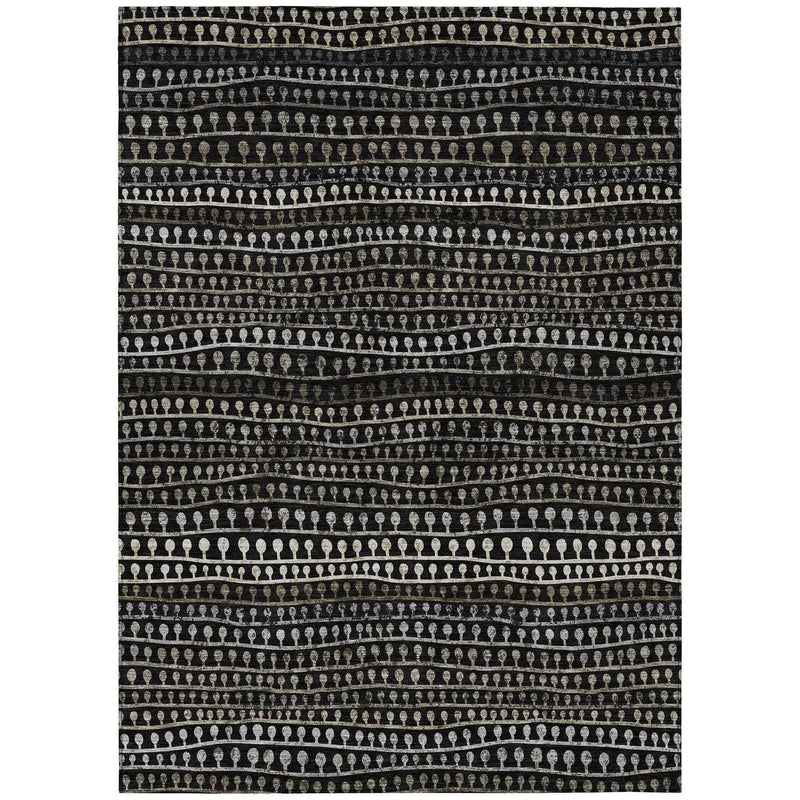 3' X 5' Taupe Charcoal And Gray Striped Washable Indoor Outdoor Area Rug