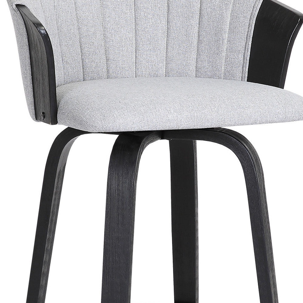 30" Light Gray And Black Fabric Swivel Bar Height Bar Chair