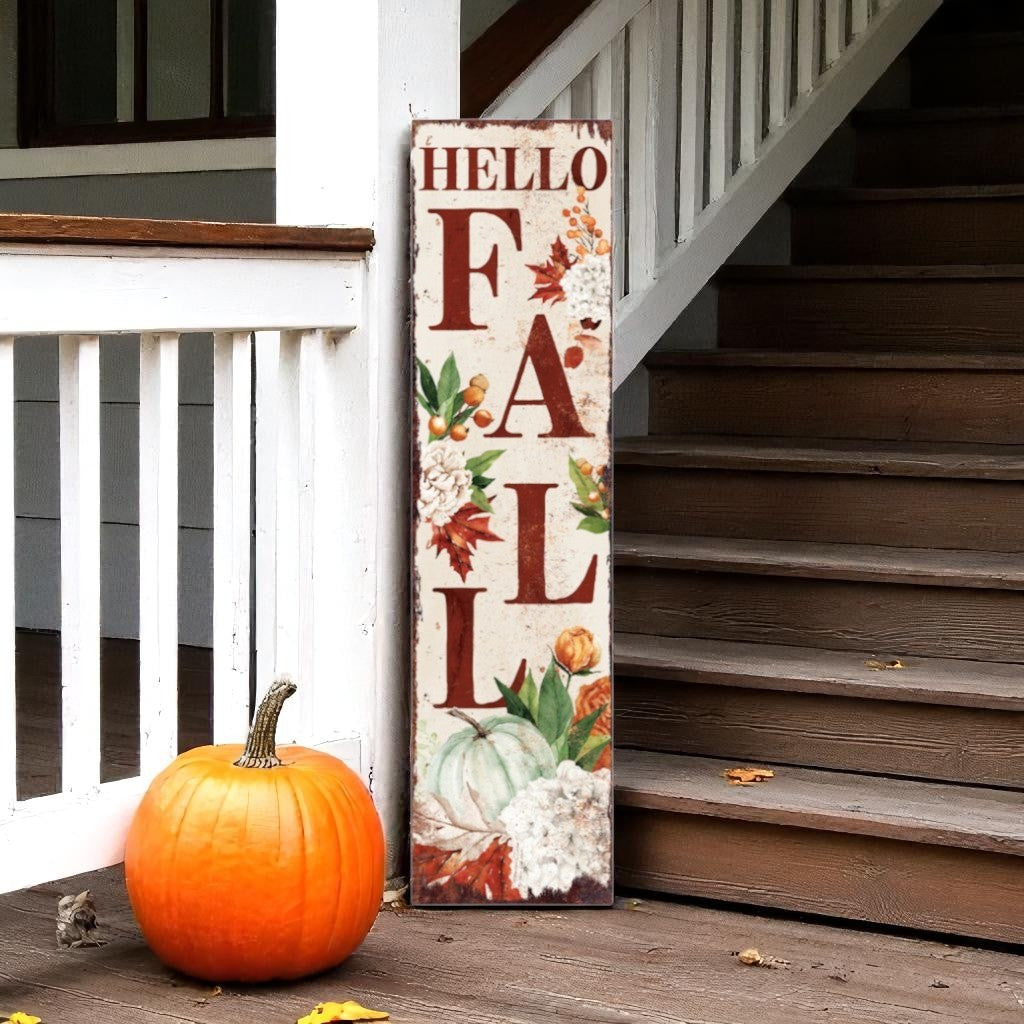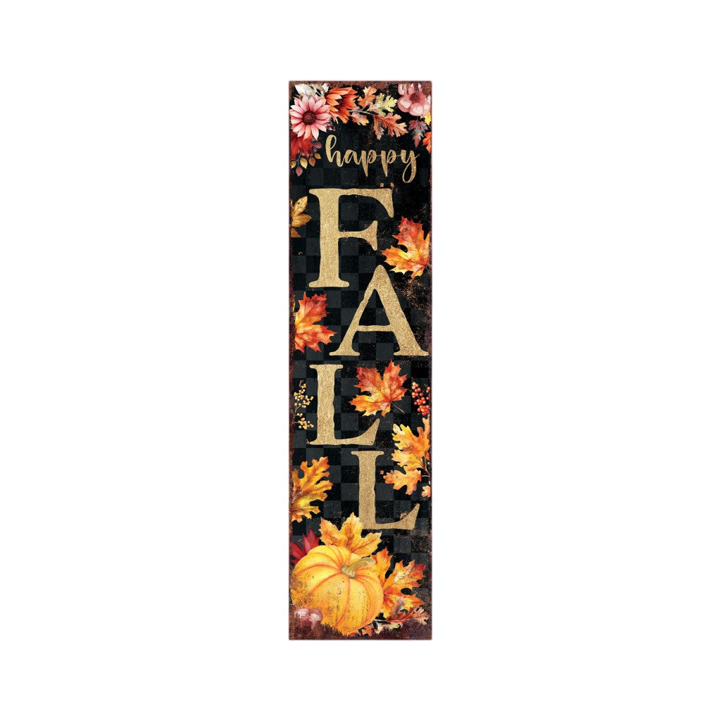 36" Black Orange And White Happy Fall Halloween Solid Wood Porch Sign