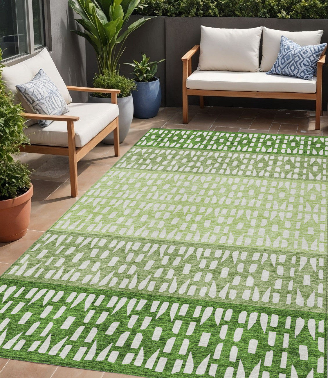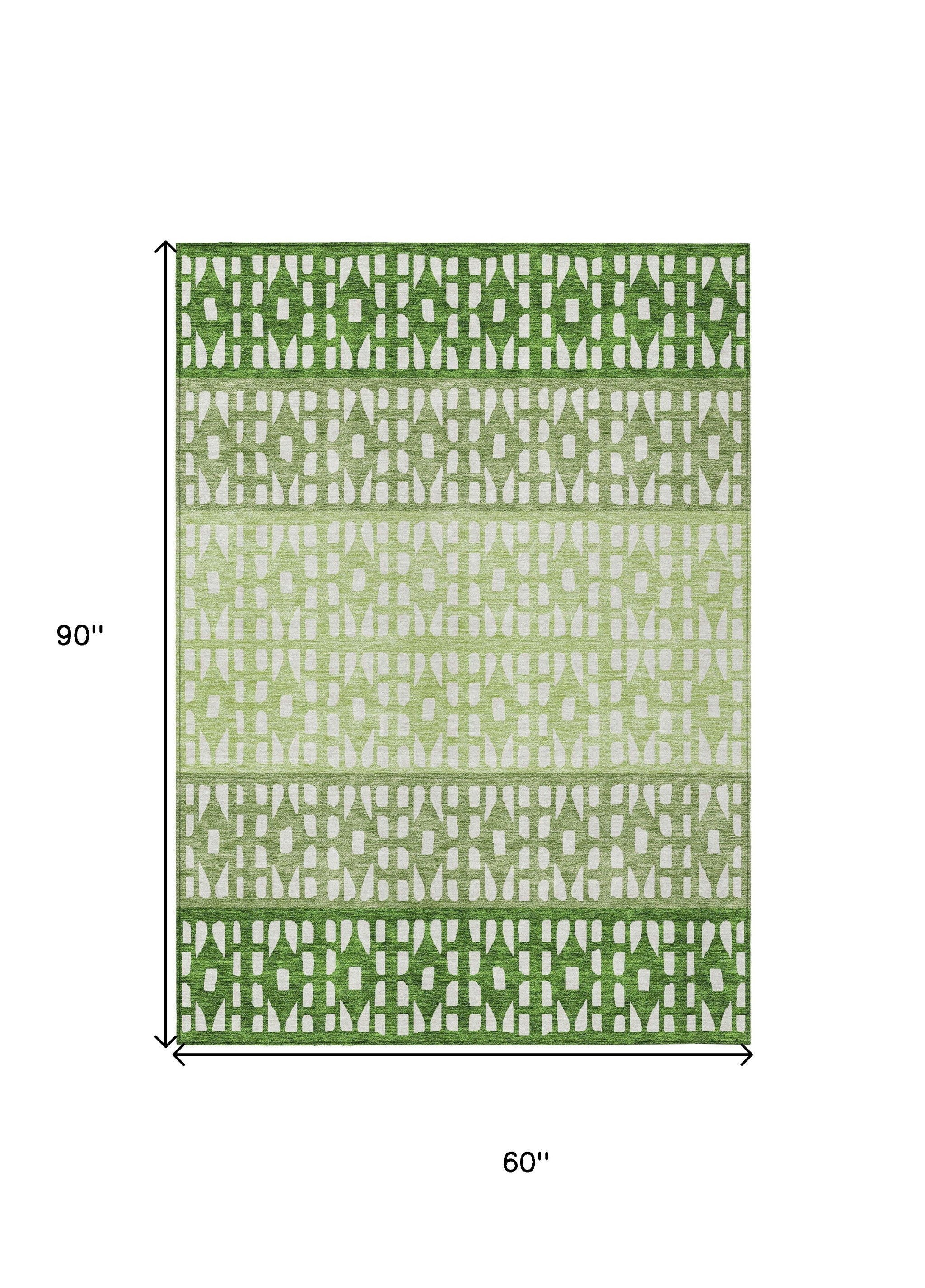 5' X 8' Green Sage And Ivory Geometric Washable Indoor Outdoor Area Rug