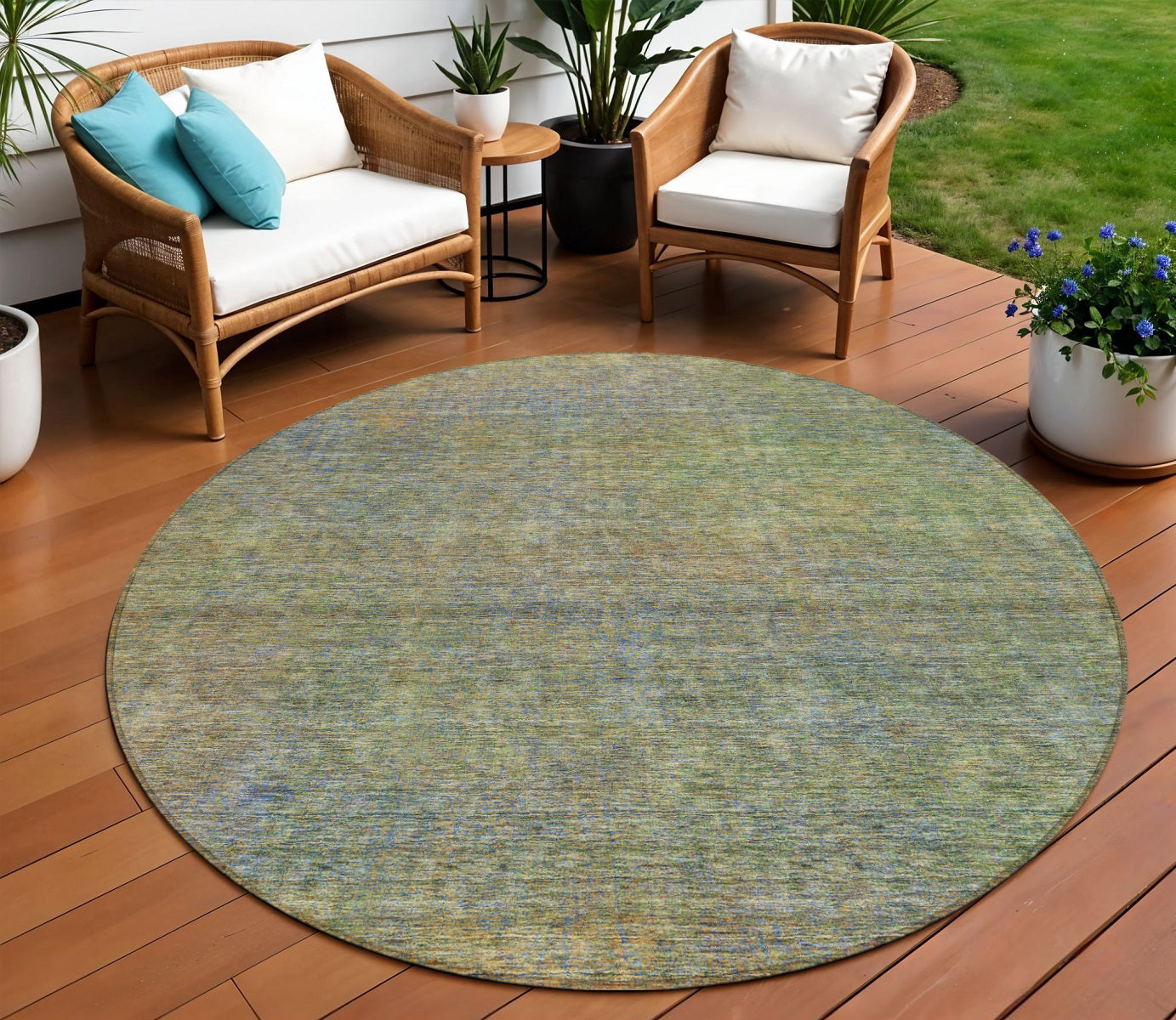 8' Green Gold And Charcoal Round Abstract Washable Indoor Outdoor Area Rug
