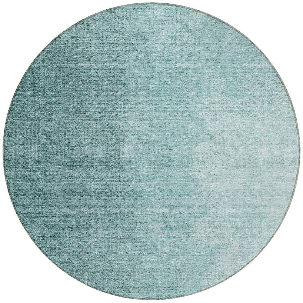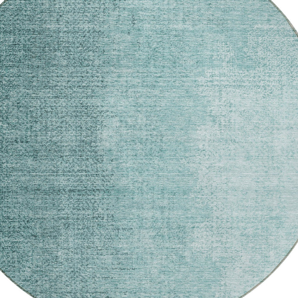 8' Teal Blue And Aqua Round Abstract Washable Indoor Outdoor Area Rug