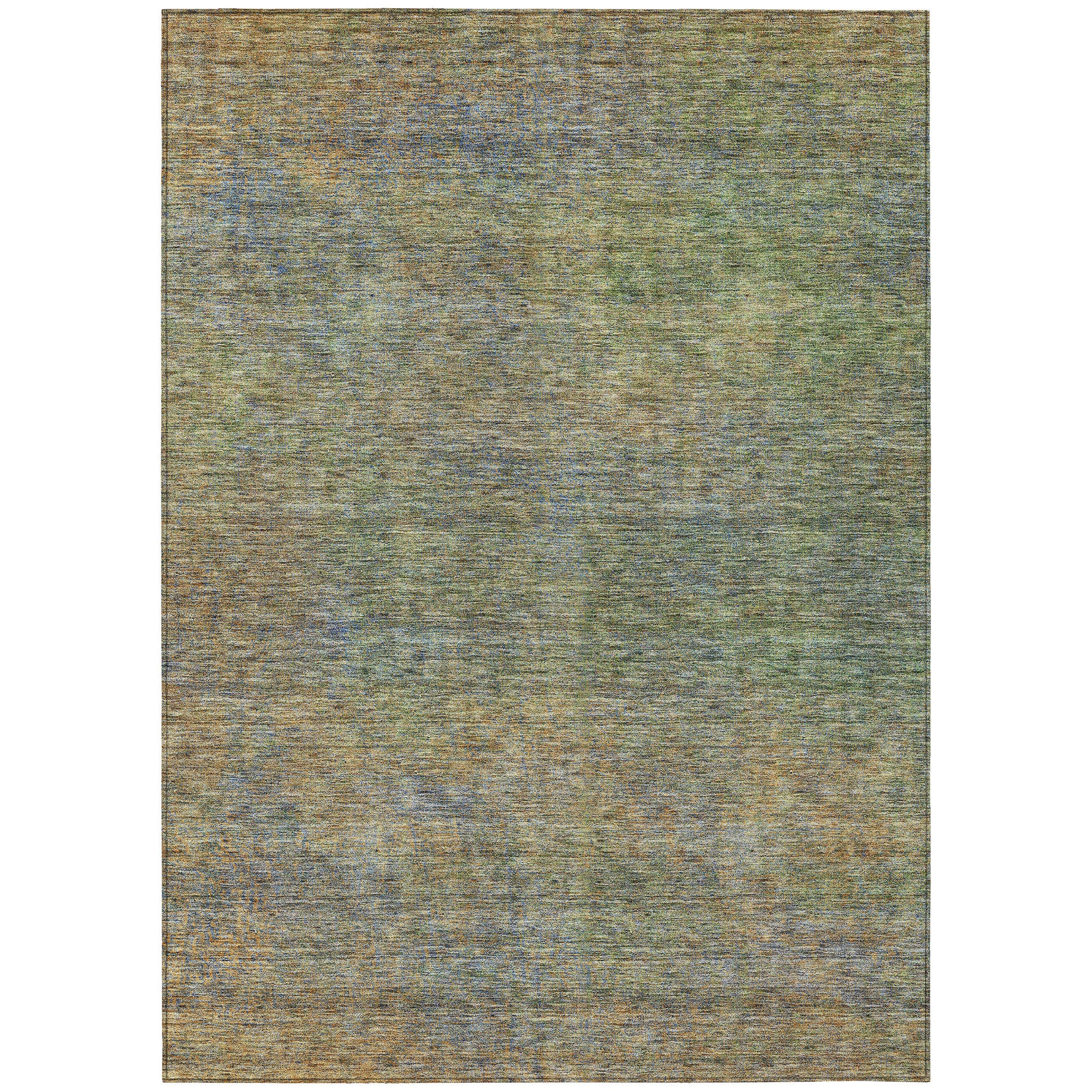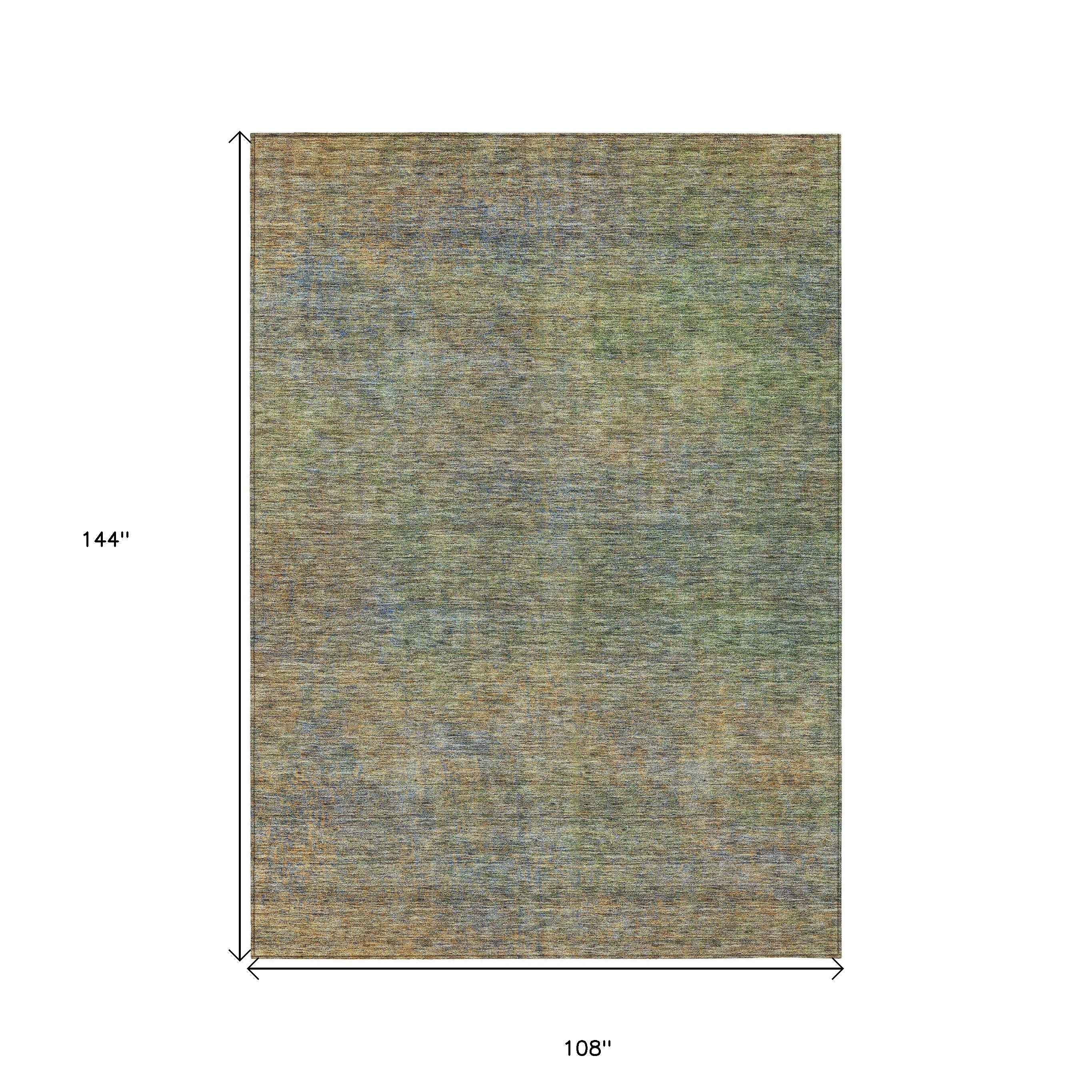 9' X 12' Green Gold And Charcoal Abstract Washable Indoor Outdoor Area Rug