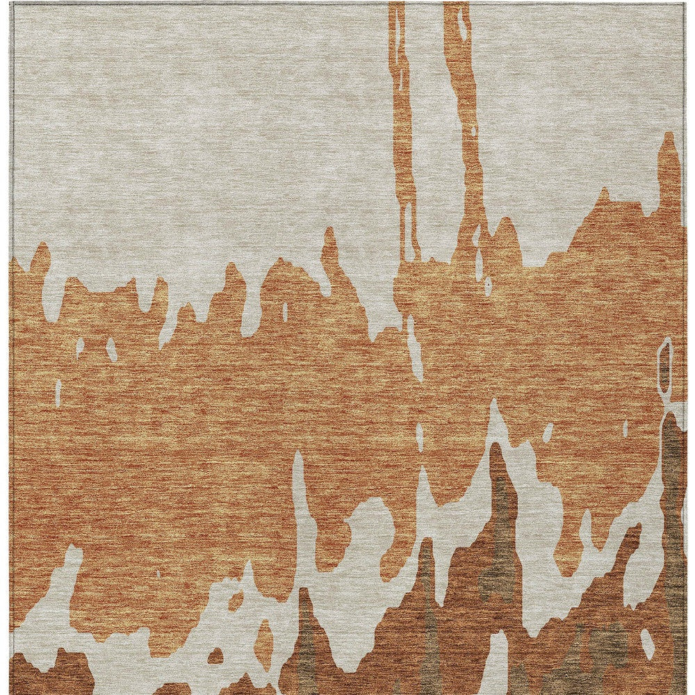 9' X 12' Orange And Brown Abstract Washable Indoor Outdoor Area Rug