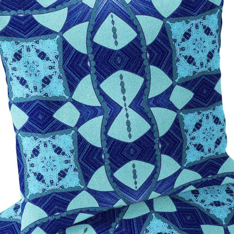 Set of Two 16" X 16" Blue and Green Blown Seam Eclectic Indoor Outdoor Throw Pillow