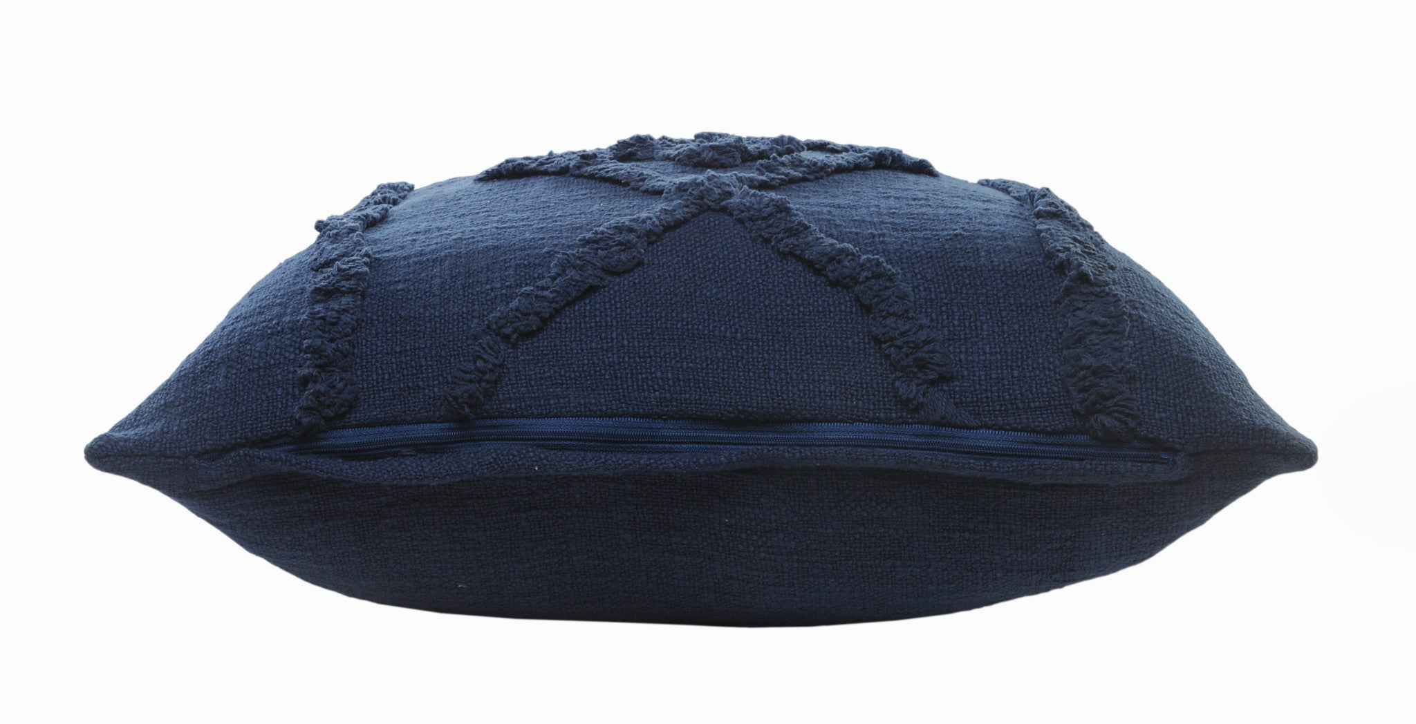 20" X 20" Navy And Dark Blue 100% Cotton Geometric Zippered Pillow