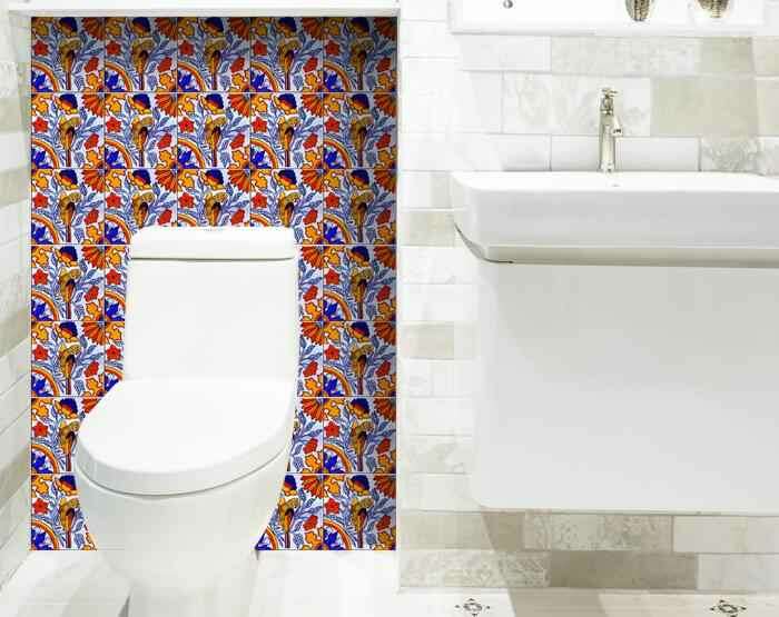 Create a unique look with these 4" x 4" Orange Red and Blue Peel and Stick Removable Tile stickers. These fabulous peel and stick tiles will add sophisticated flair and design to your kitchen backsplash, fireplace mantel, stair treads, half wall, bathroom or nook. These 4" square tile stickers are an easy, no mess solution to complete a personalized and colorful room makeover. Easy to apply on any clean dry flat surface, and easy to remove. Multi use and multi-room appeal make this design option is perfect for renters, landlords, college students and homeowners alike. Peel and stick tile decals make it easy to turn your space into a home. Removable without damage to surfaces. One kit contains 24 stickers. Kit includes a single repeating design.
