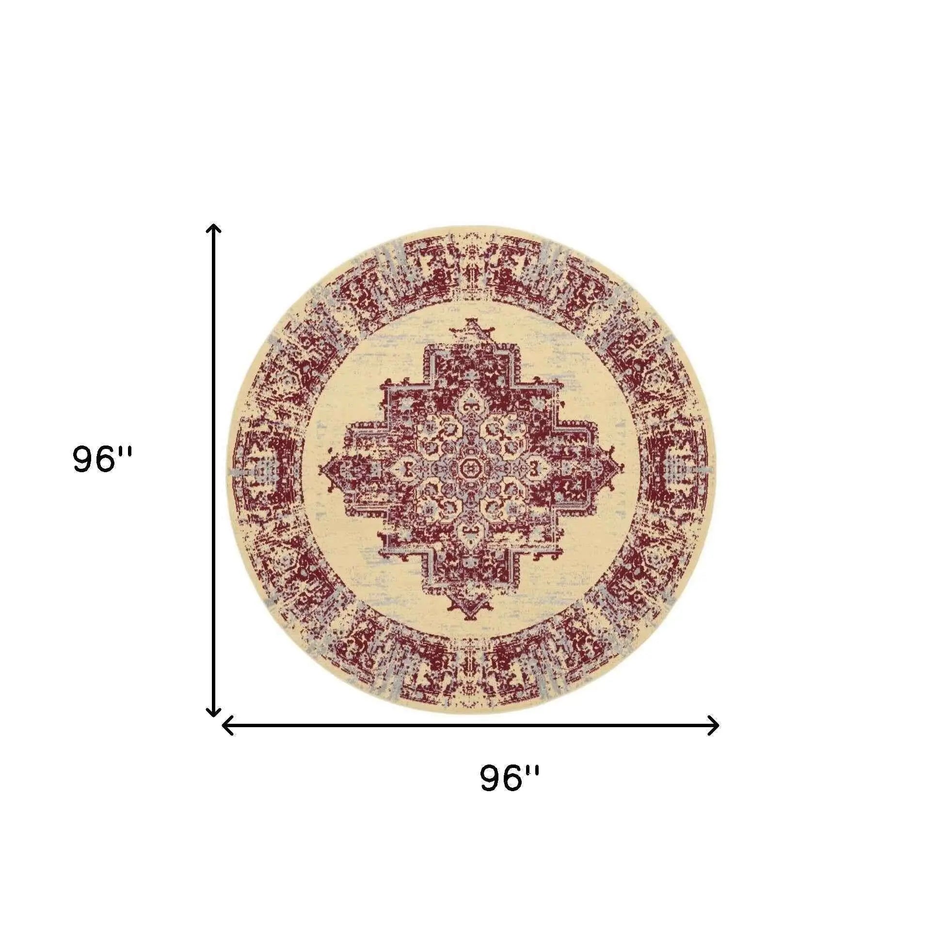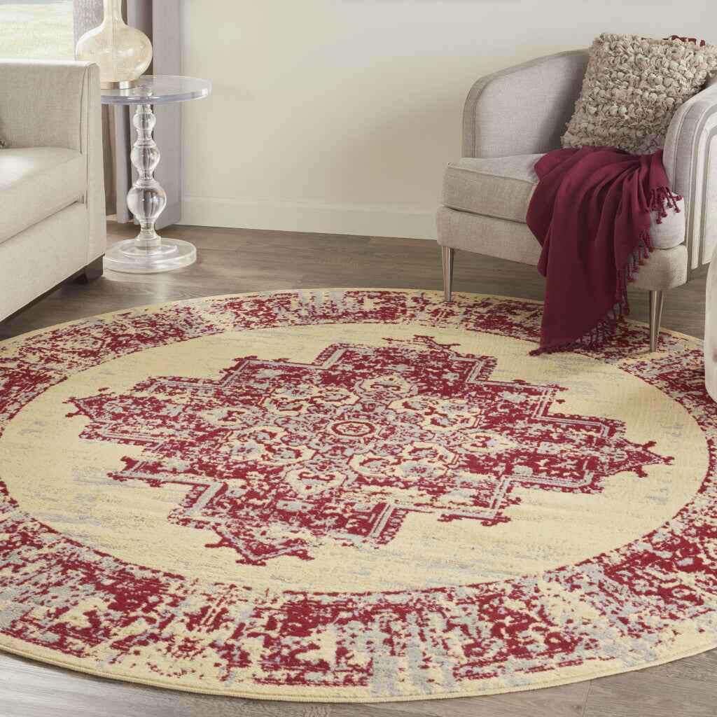 8' Cream Round Damask Power Loom Area Rug