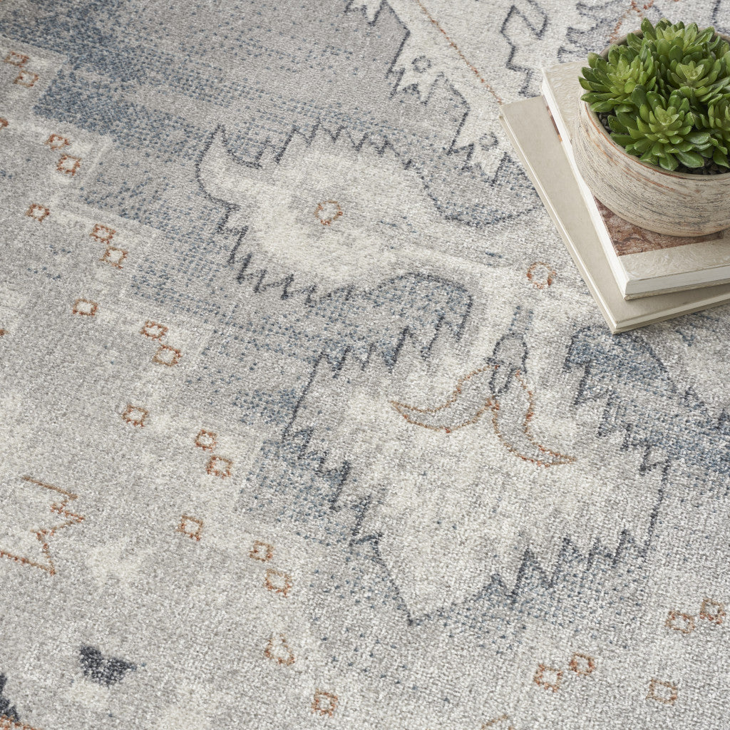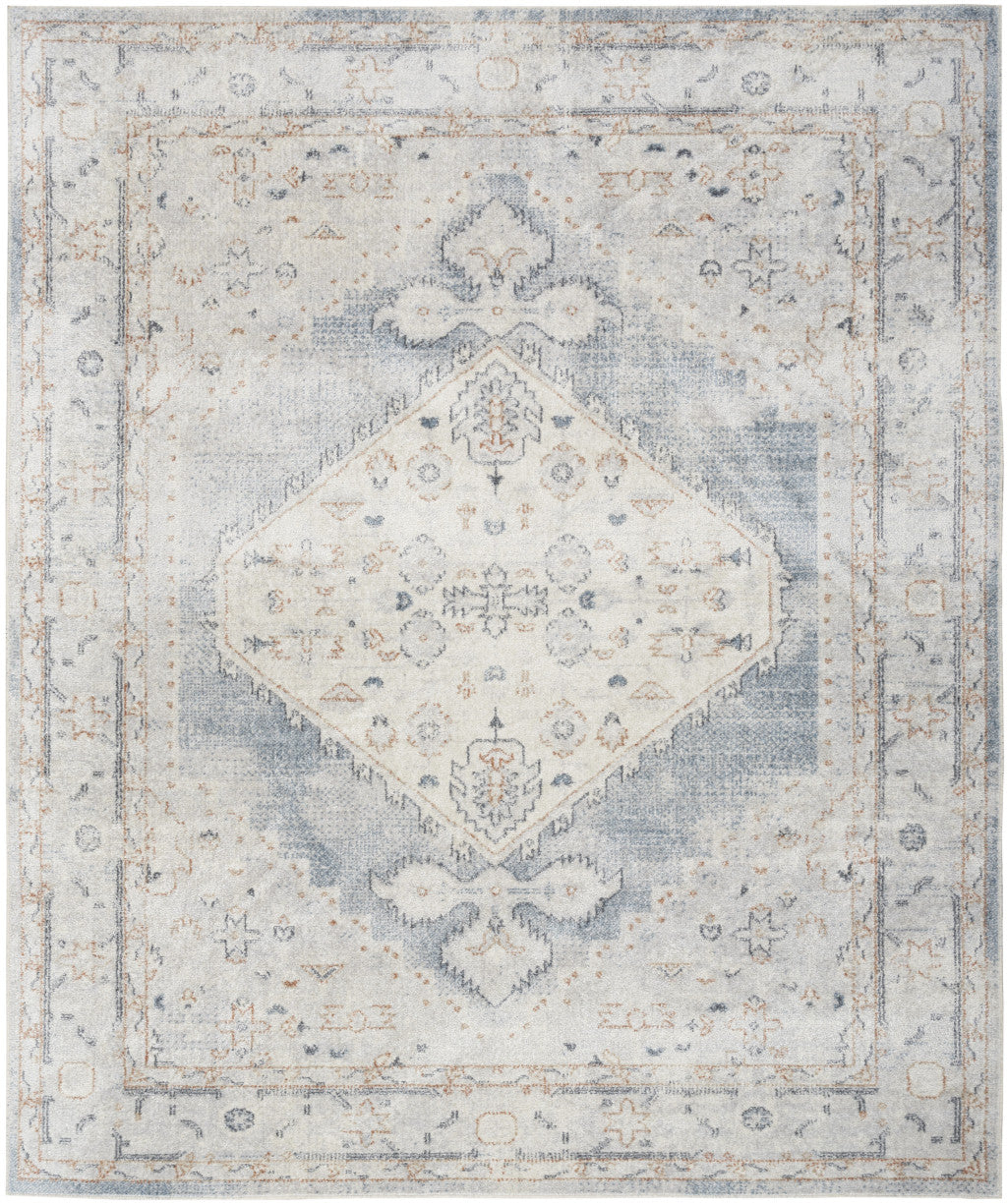 8' X 10' Light Blue Oriental Power Loom Distressed Washable Area Rug