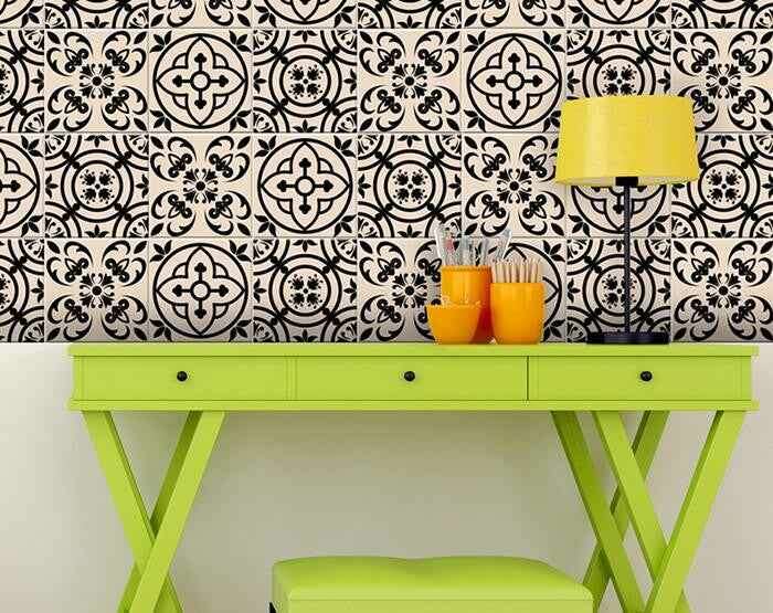 The possibilities are endless with these 8" x 8" Cream and Black Mosaic Peel and Stick Removable Tile stickers. These fabulous peel and stick tiles will add sophisticated flair and design to your kitchen backsplash, fireplace mantel, stair treads, half wall, bathroom or nook. These 8" square tile stickers are an easy, no mess solution to complete a personalized and colorful room makeover. Easy to apply on any clean dry flat surface, and easy to remove. Multi use and multi-room appeal make this design option is perfect for renters, landlords, college students and homeowners alike. Peel and stick tile decals make it easy to turn your space into a home. Removable without damage to surfaces. One kit contains 24 stickers. Kit includes multiple design styles and colorations to be displayed in any arrangement you choose.