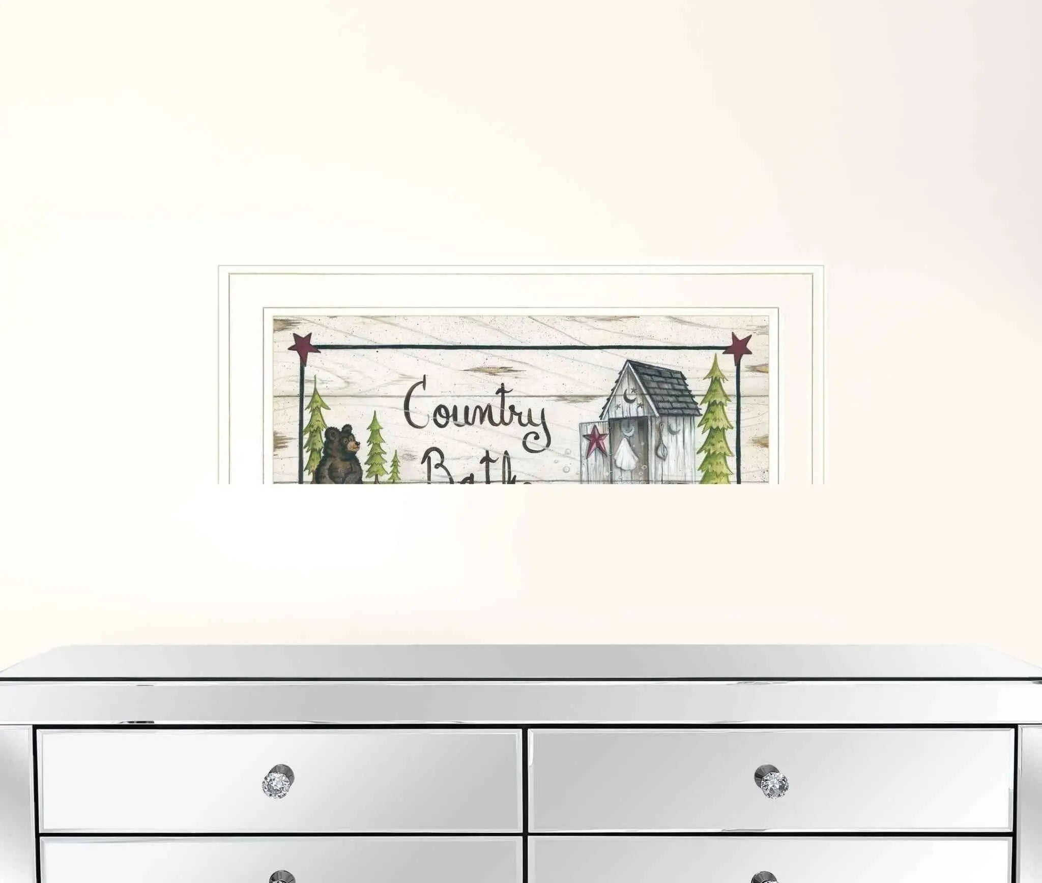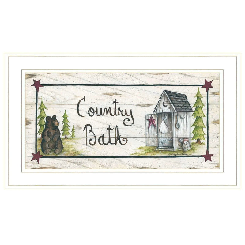 Add an air of fashion to your room and rejuvenate the space with this country bath 1 white framed print bathroom wall art. This print is a visual artistic expression that allows you to decorate your space in style. Reproduced for you on paper, this hanging decorative accent will be a trendy and fashionable way to dress your walls. Adding this hanging wall art to your space to make your room feel more finished and attractive. Utilize this opportunity to create a focal point in the room with this fabulous wall decor option. 12 inches H x 21 inches W x 1 inches D