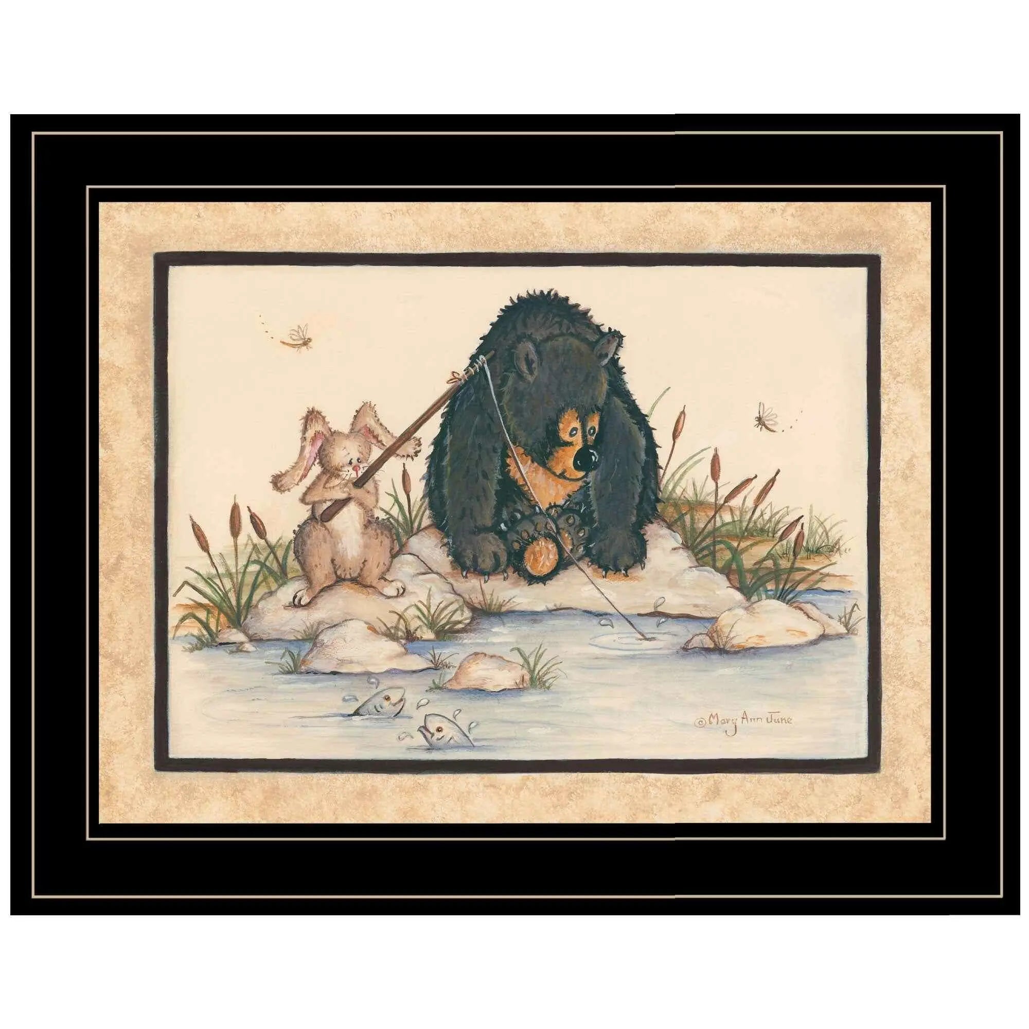 Gone Fishing 2 Black Framed Print Wall Art