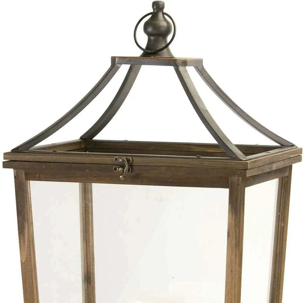 Set Of Two Brown Flameless Floor Lantern Candle Holder