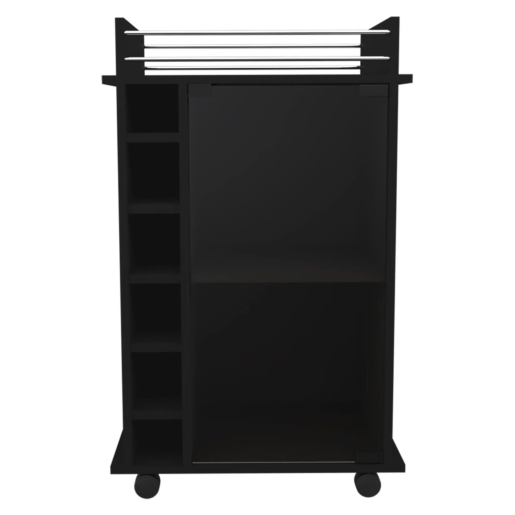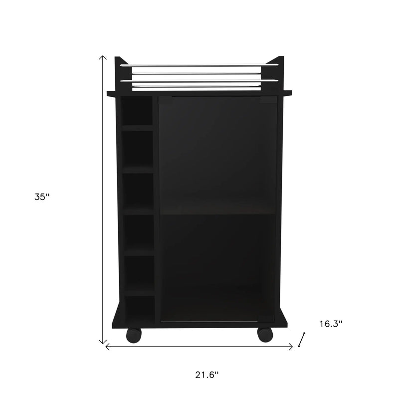 Black Rolling Bar Cart With Wine Storage