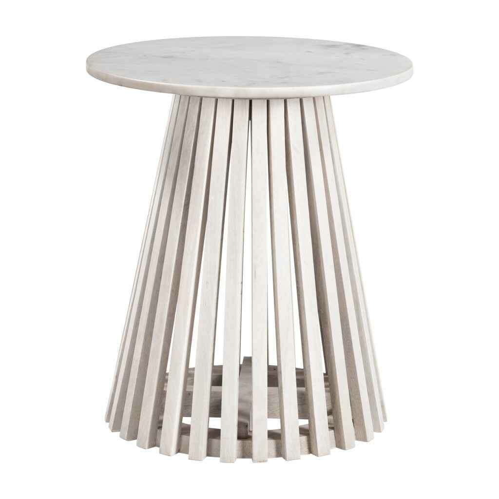 20" White and Natural Distressed Marble and Solid Wood Round Pedestal End Table