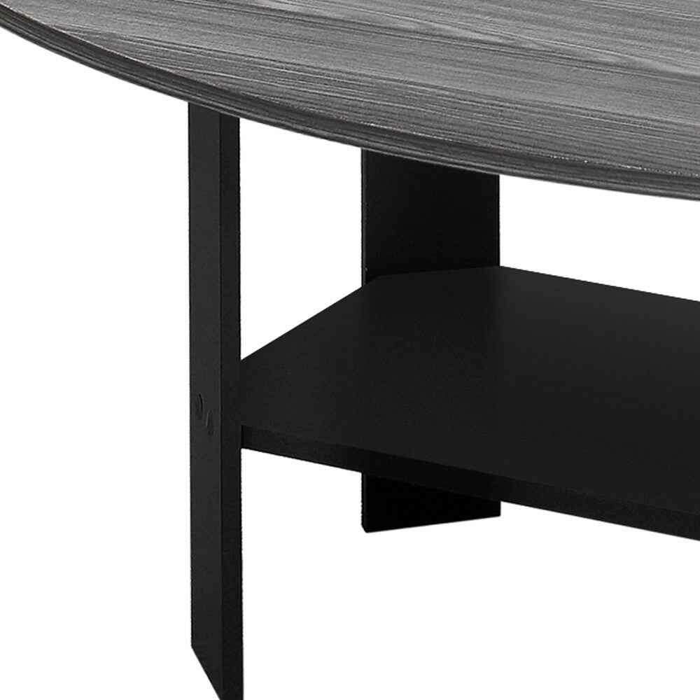 This coffee table set is just what you need to get your living room or lounge area set up and ready. The top of this manufactured wood table is gray, while the base is a nice compliment in black. Includes a single shelf for handy storage or display space. This rectangular table is an classic yet updated way to accent your room. If you're looking for something that can fit into a living area, bedroom, or office, this coffee table is for you. This coffee table is the sturdy, reliable and stylish answer to your living room needs. 16.25-inch H x 36-inch W x 21.5-inch D