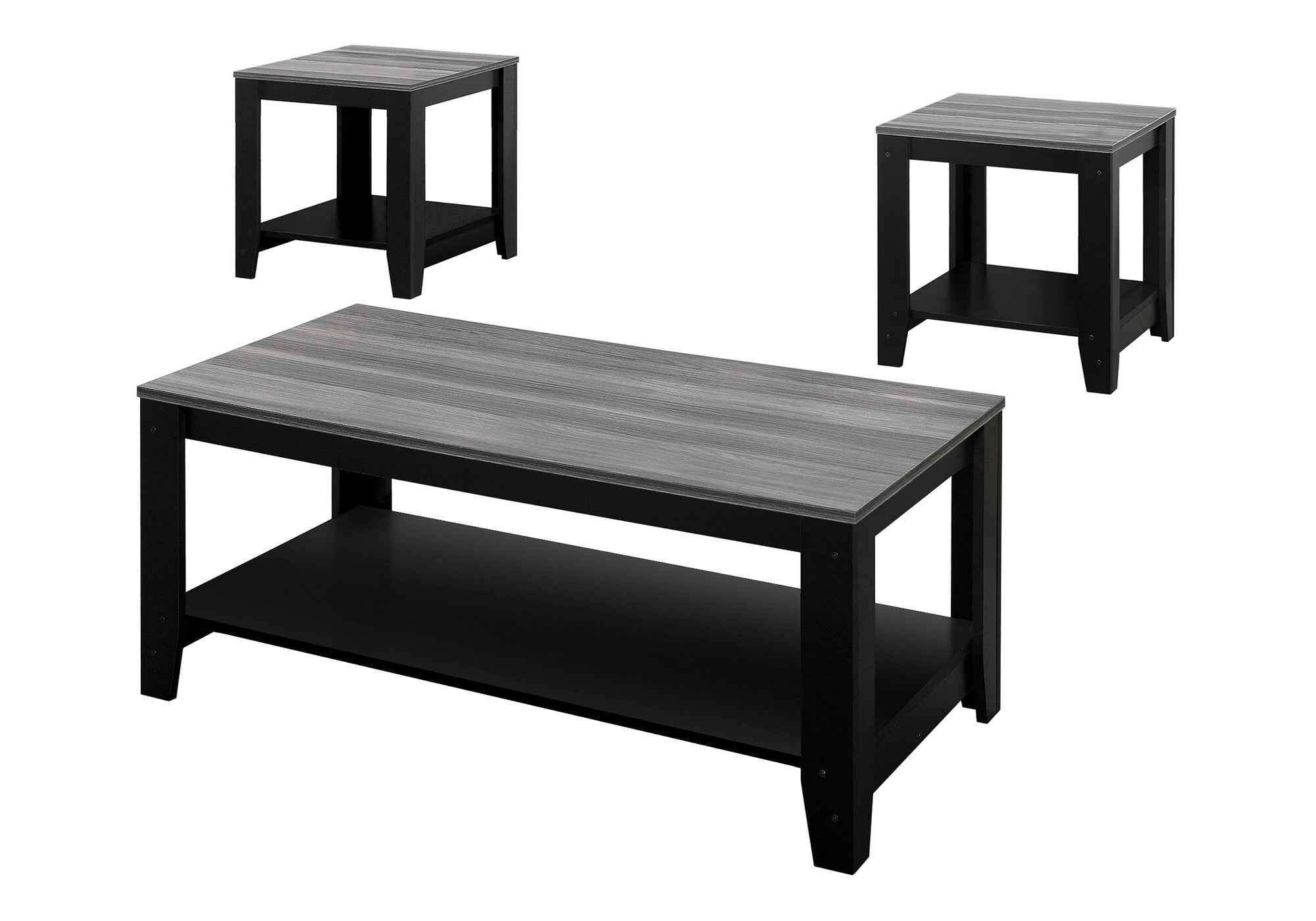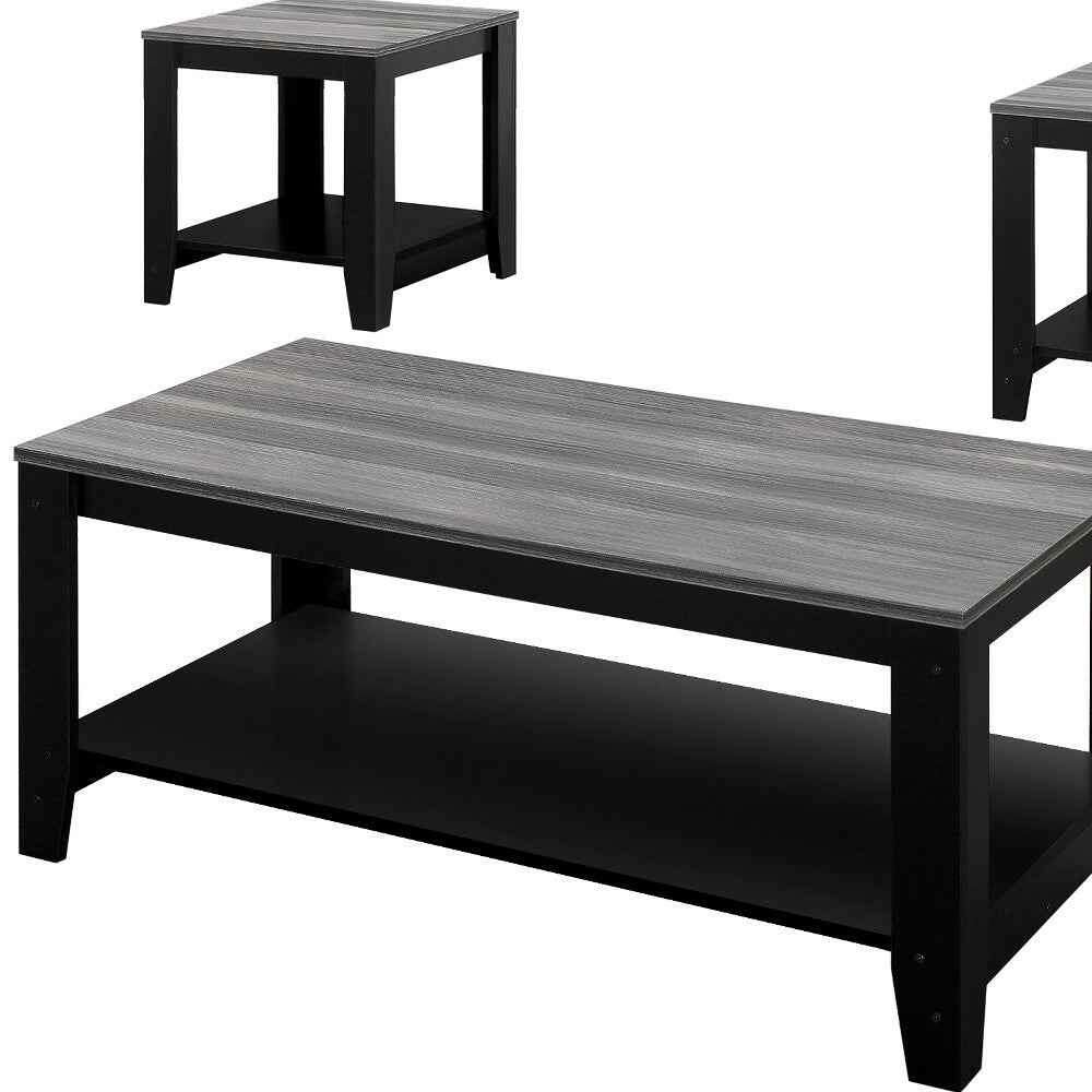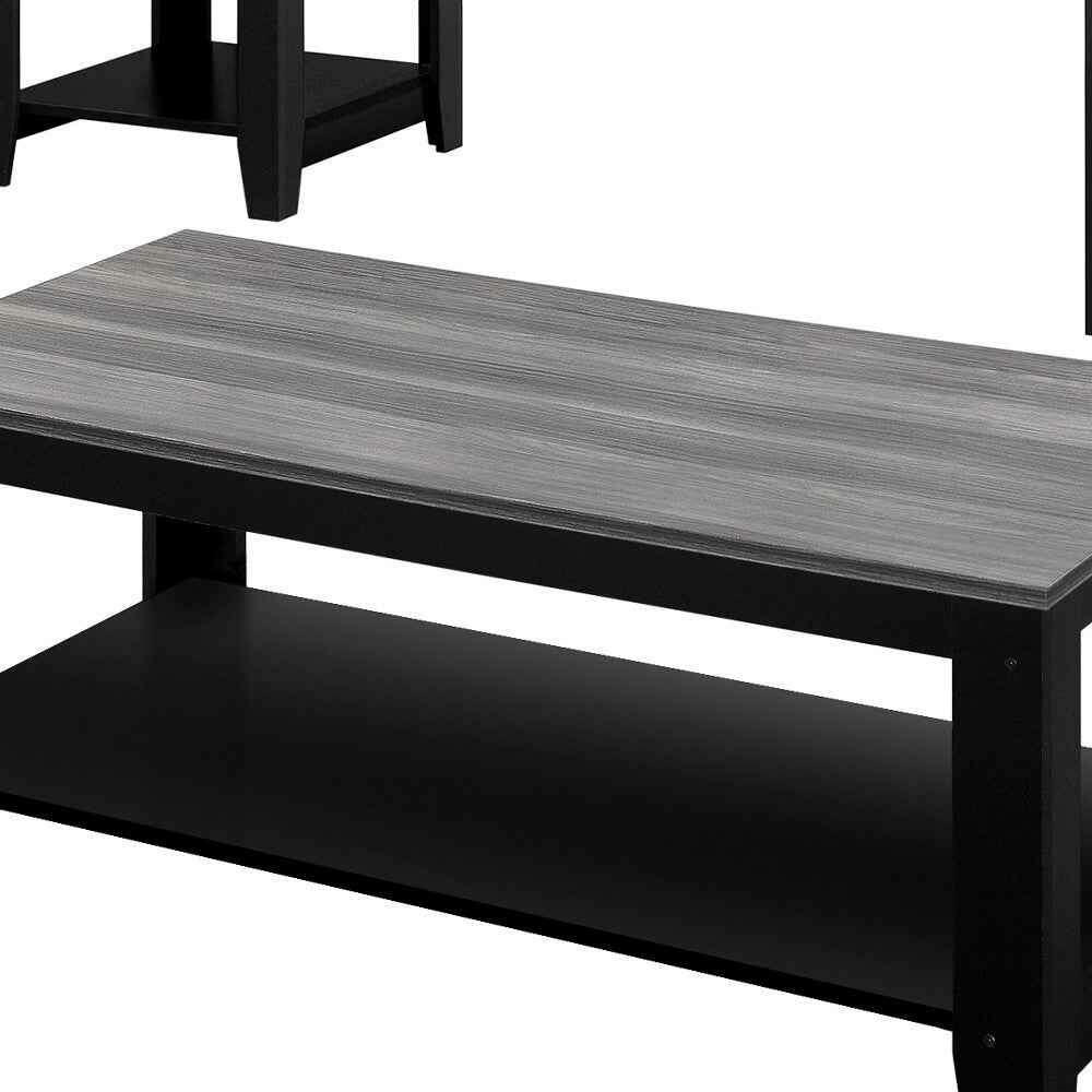 Set of Three 42" Gray And Black Coffee Table With Shelf