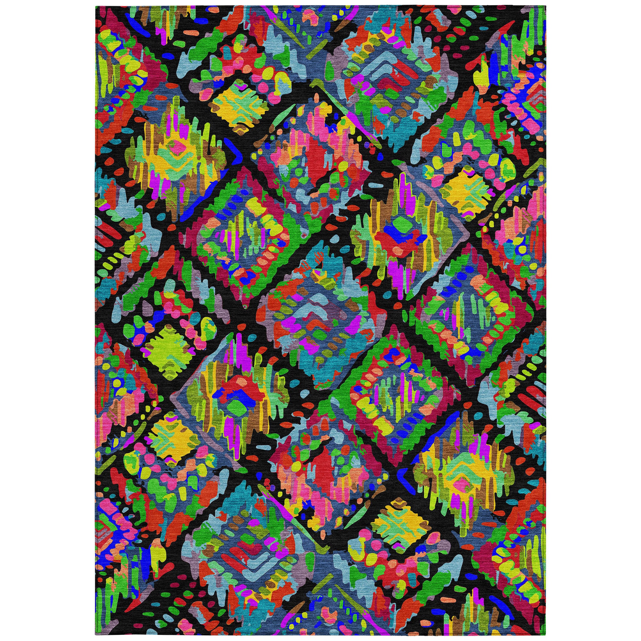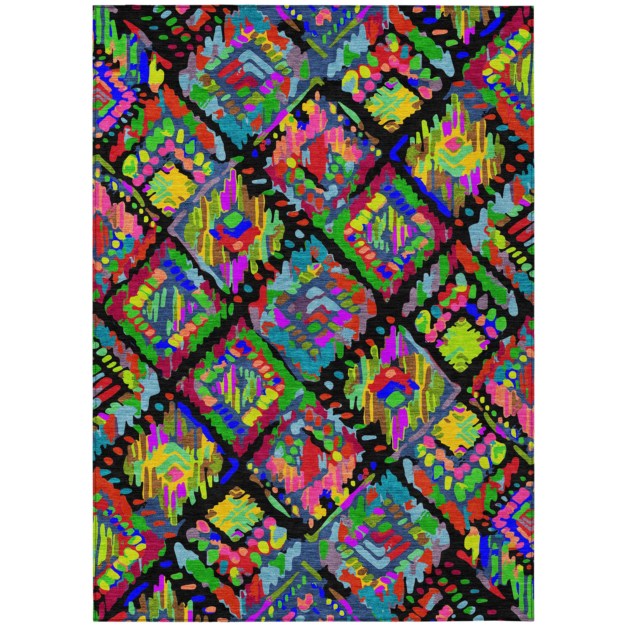 Set an inviting tone in your space with this 3-foot x 5-foot black yellow and green geometric washable indoor outdoor area rug. This rectangle shaped rug features a geometric design that will work well both indoors or out. A classic shape marries with good looking design for your living room, hall, bedroom, porch, patio, or poolside. Ideal for outdoor spaces or high traffic areas with kids and pets, this rug is made from heavy duty polyester that is stain resistant to help repel water, dirt, and stains. Versatile in use, durable, and easy to maintain, this rug is an ideal solution to add a decorative and inviting touch to your indoor or outdoor space. 36-inch h x 60-inch w x 0.19-inch d.
