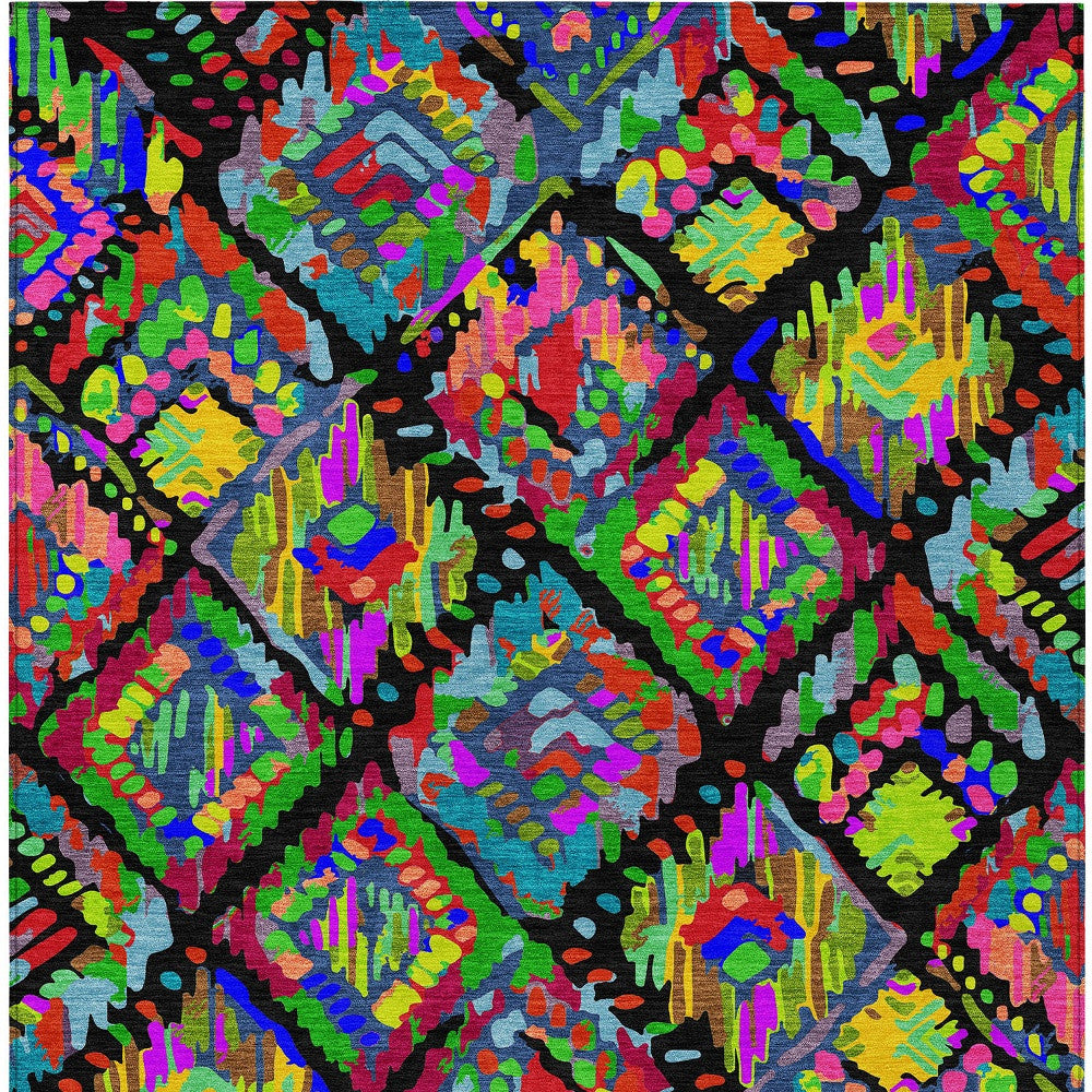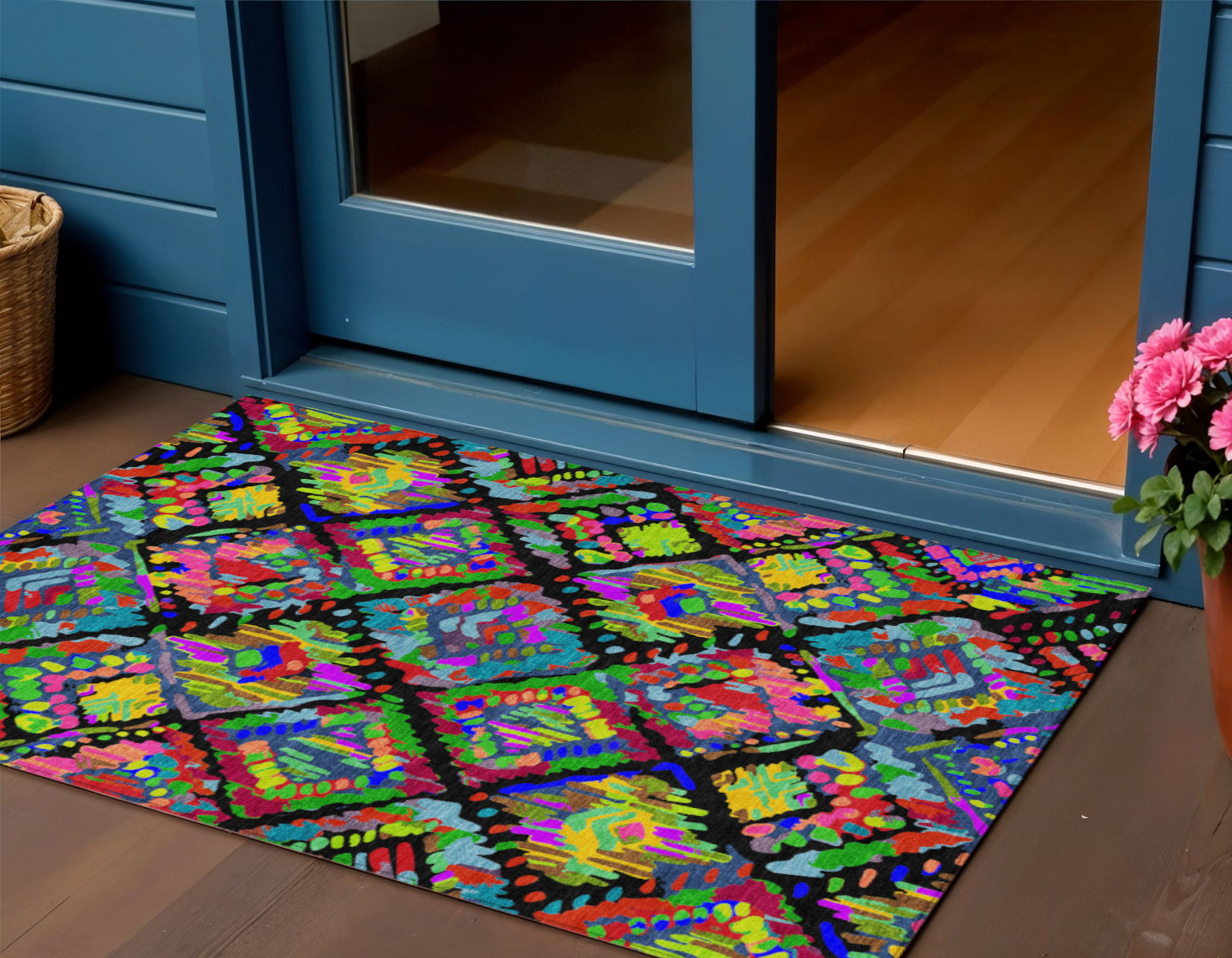3' X 5' Black Yellow And Green Geometric Washable Indoor Outdoor Area Rug