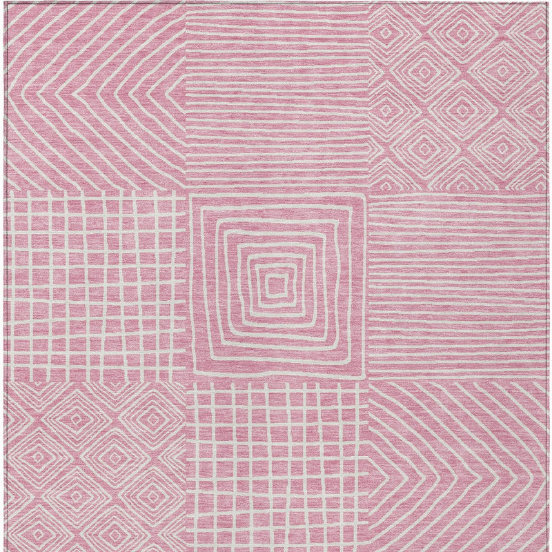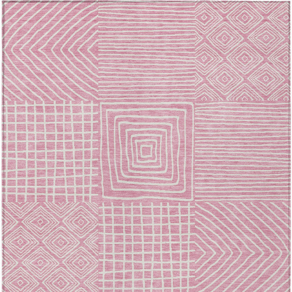 8' X 10' Pink And Ivory Geometric Washable Indoor Outdoor Area Rug