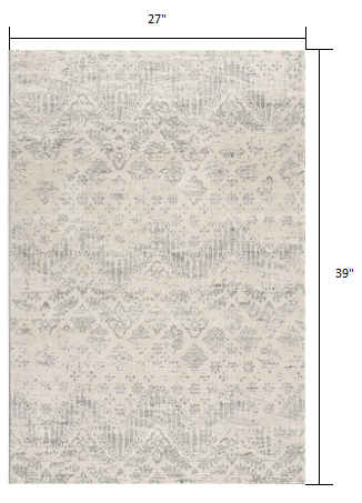 2’ X 3’ Ivory Distressed Ikat Pattern Scatter Rug